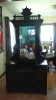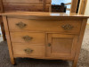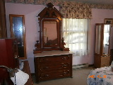 Mid 1800's Victorian Walnut MarbleTop Dresser with mirror. It has 3 pull-out drawers. A Glove Box sits on top of marble on each side. It also has a candle holder on each side up higher. Is very nicely decorated on top and on each side of dresser and is in super condition. Sits on rollers.
