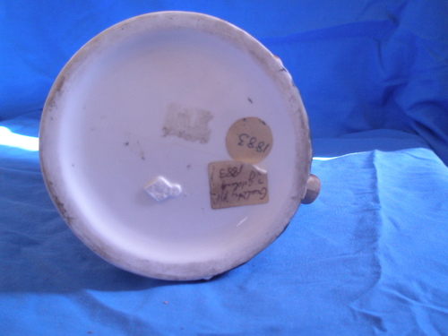 This is a very elegant water pitcher ?, sold to me as era 1883. The base colour is white/cream with coloured butterflies and gold gilt flowers around it and on handle. The lid is silver and balances on top. Has Hallmark Toft's Patent on it. There is also a rraised mark on the bottom of the jug but too small for me to read.