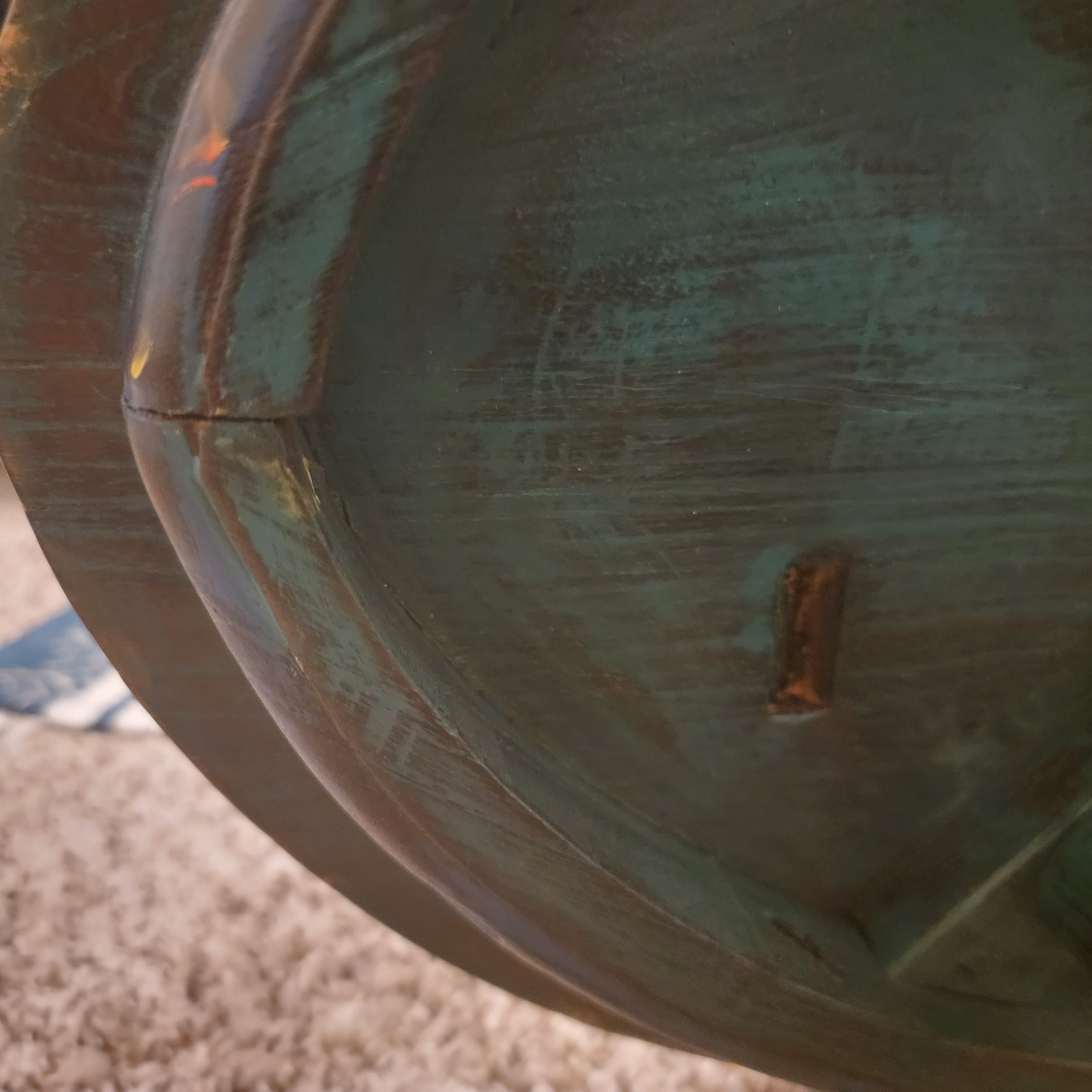 Victorian hand carved and hand painted side table. It looks like it might have possibly been a " loo" table at one point. It was given to me by my Aunt. I'm unsure where she purchased it from other than an antique shop somewhere.