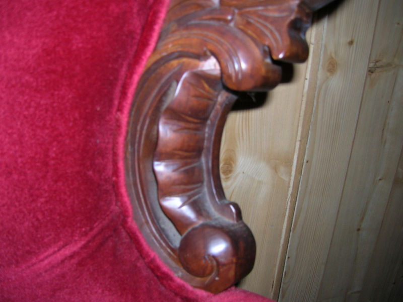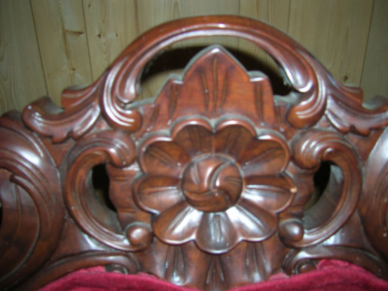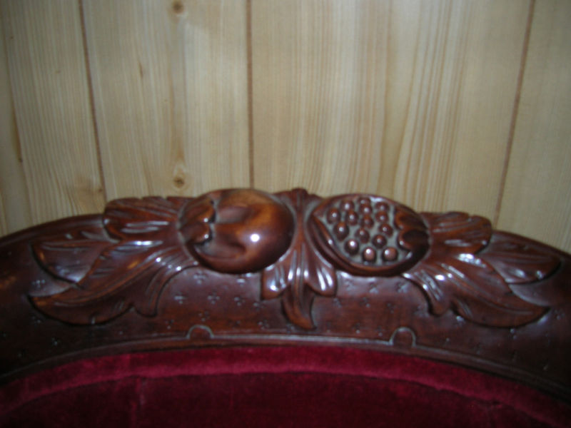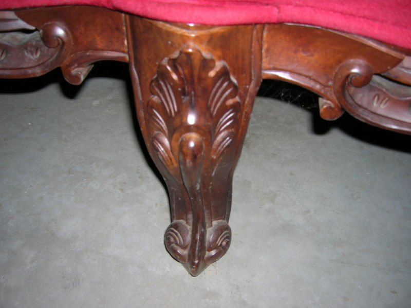 The wood looks good, no cracks or dents - it's very hard wood. Looks to have been reupholstered. Looking to find out if this is authentic or a reproduction. No casters. Back legs on all items are straight and uncarved.