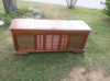 victorola hand crank record player still works sits in a 4 foot wood cabinet for record storage model number