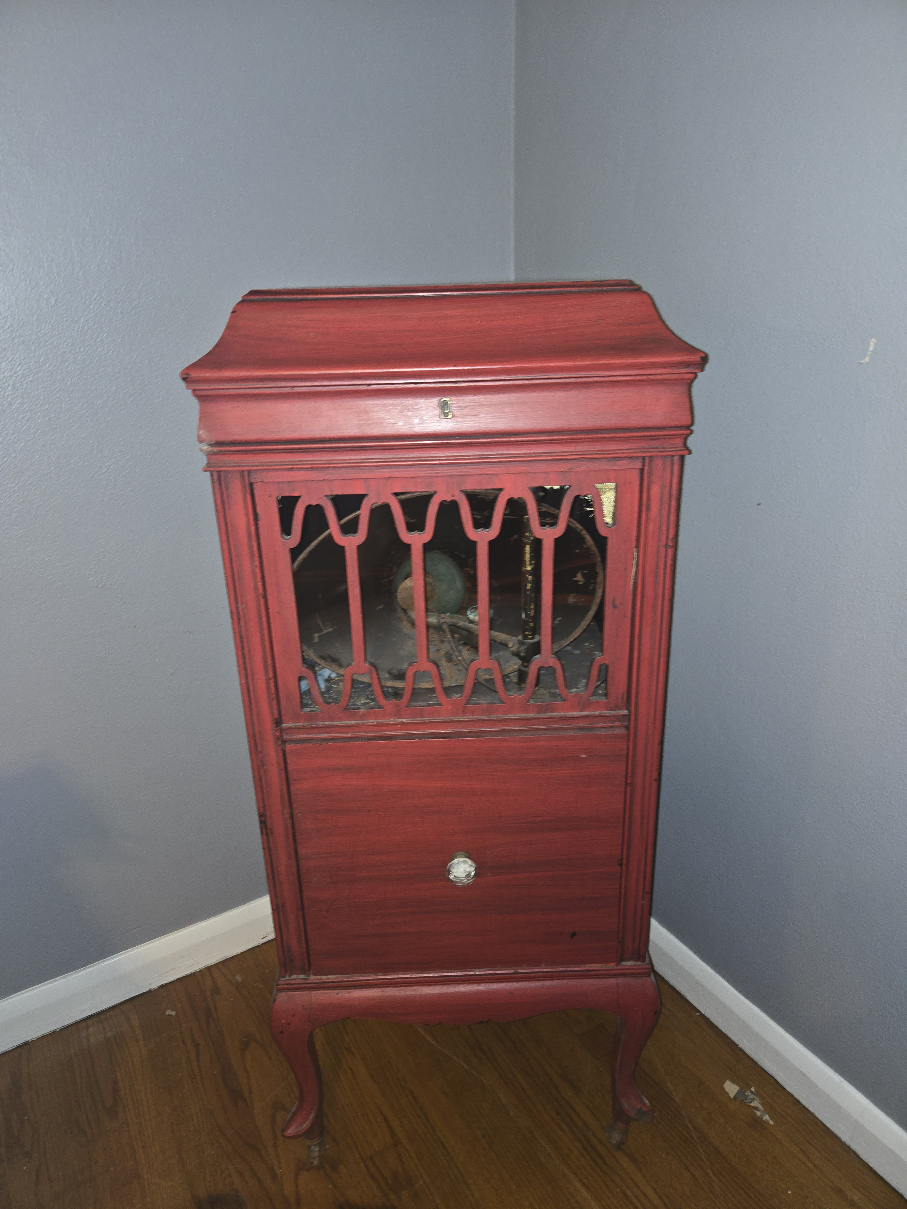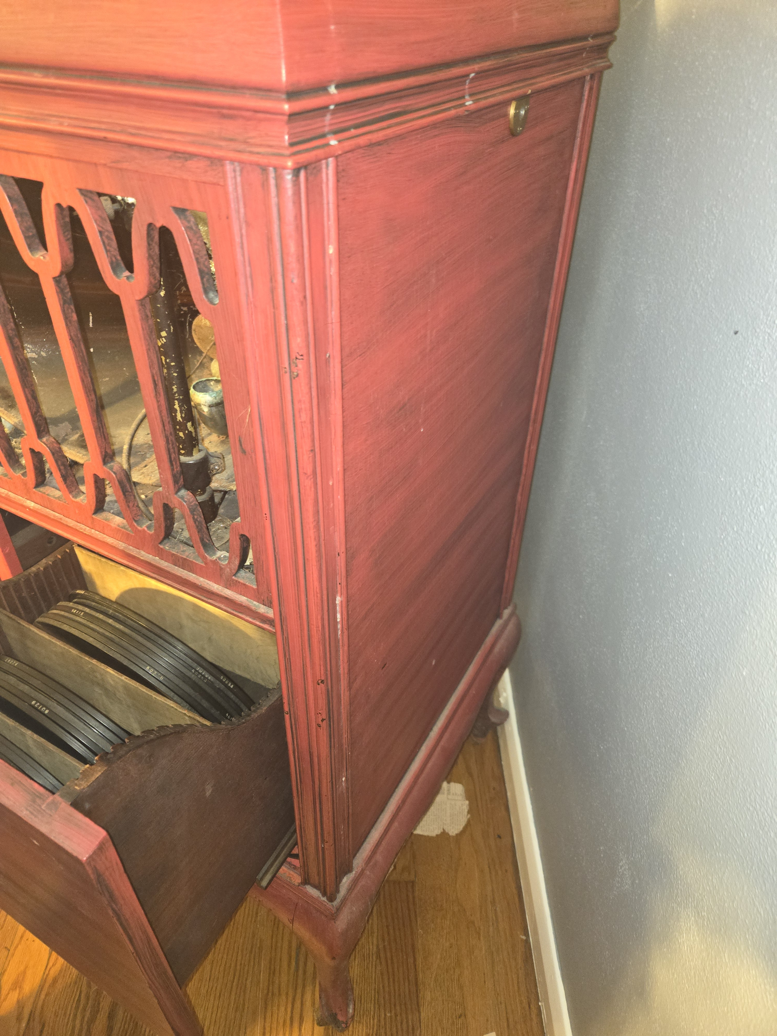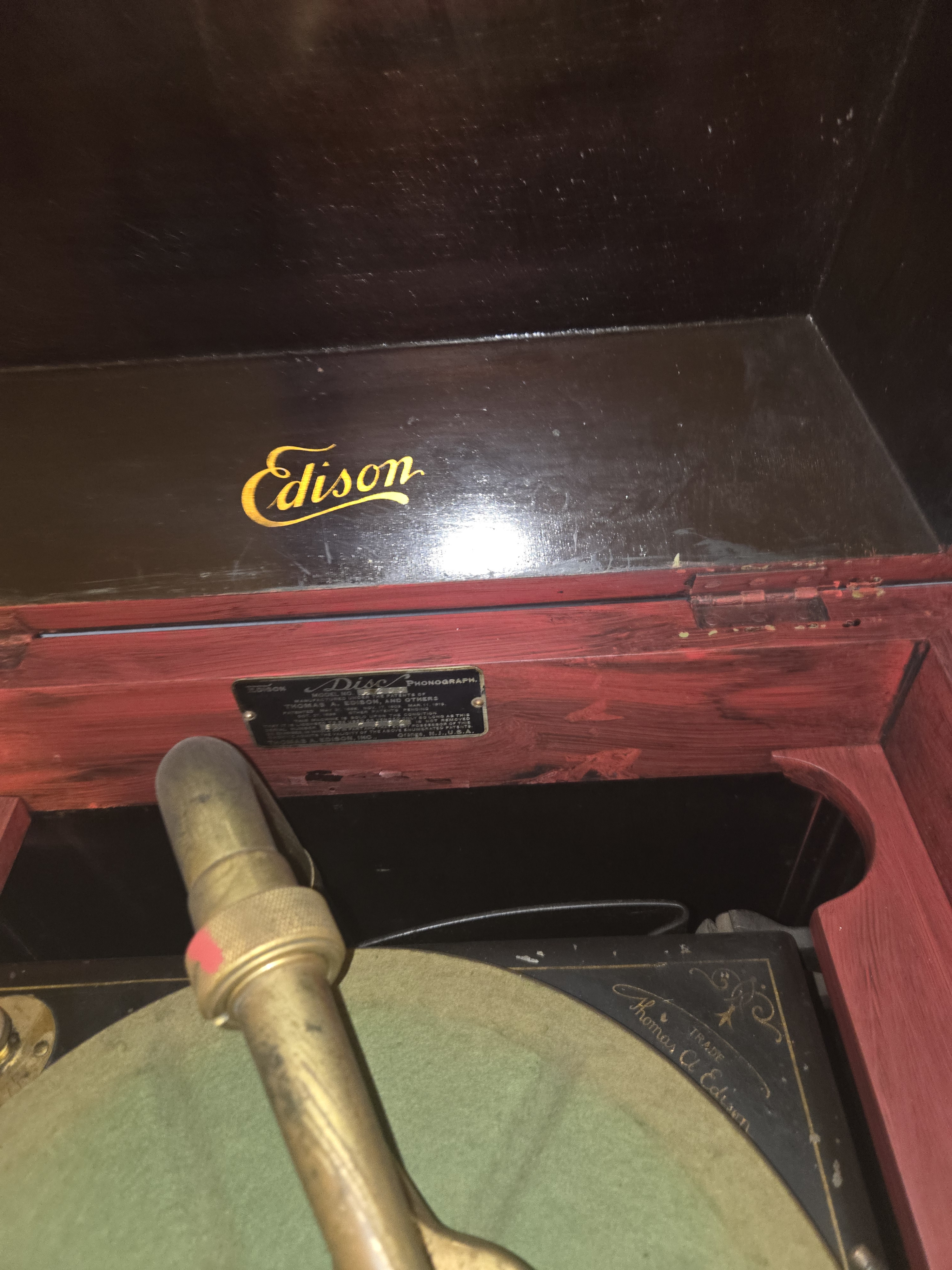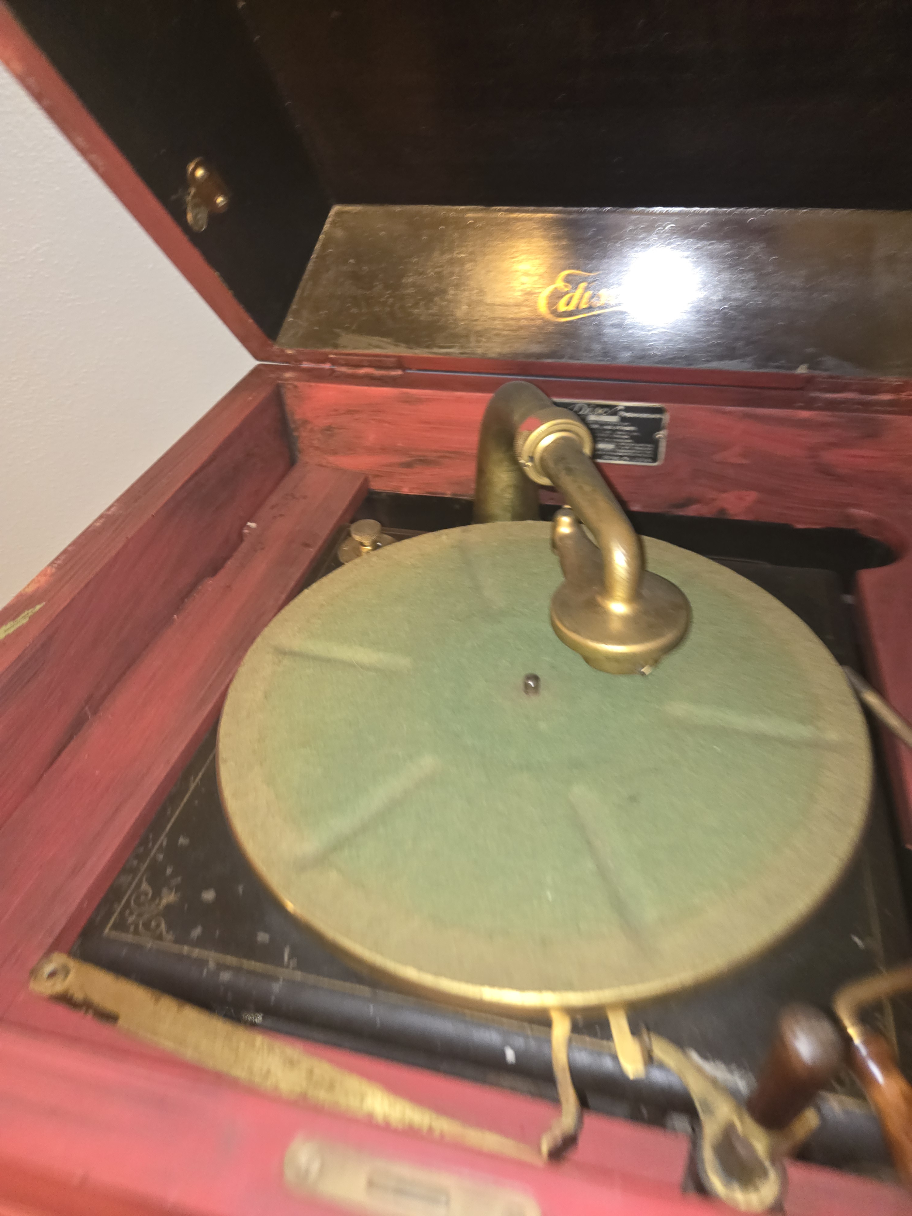 The Edison phonograph, also known as a Victrola, was a revolutionary device in the late 19th and early 20th centuries, allowing users to play recorded music at home. Thomas Edison invented the phonograph in 1877, and it became widely popular in the early 1900s. The design and technology evolved rapidly, leading to various models and styles. This particular model, with its wooden construction and ornate design, reflects the craftsmanship of the period.