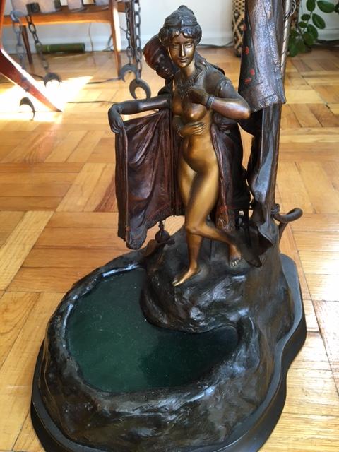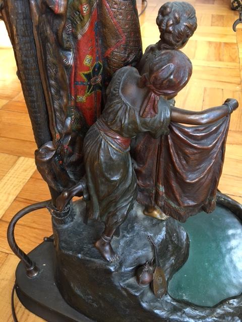 This sculpture was acquired by my father in the 1950s. I believe it is a Bergman vienna bronze. It is 26" high and 13" wide at the base. It is in excellent condition. It was turned into a lamp sometime in the past, but the sculpture was not compromised in any way. The base was added at that time. Measurements are for the sculpture alone. The maker's mark is in one of the photos. I am interested in knowing exactly what it is, and possibly selling it. Thank you.