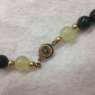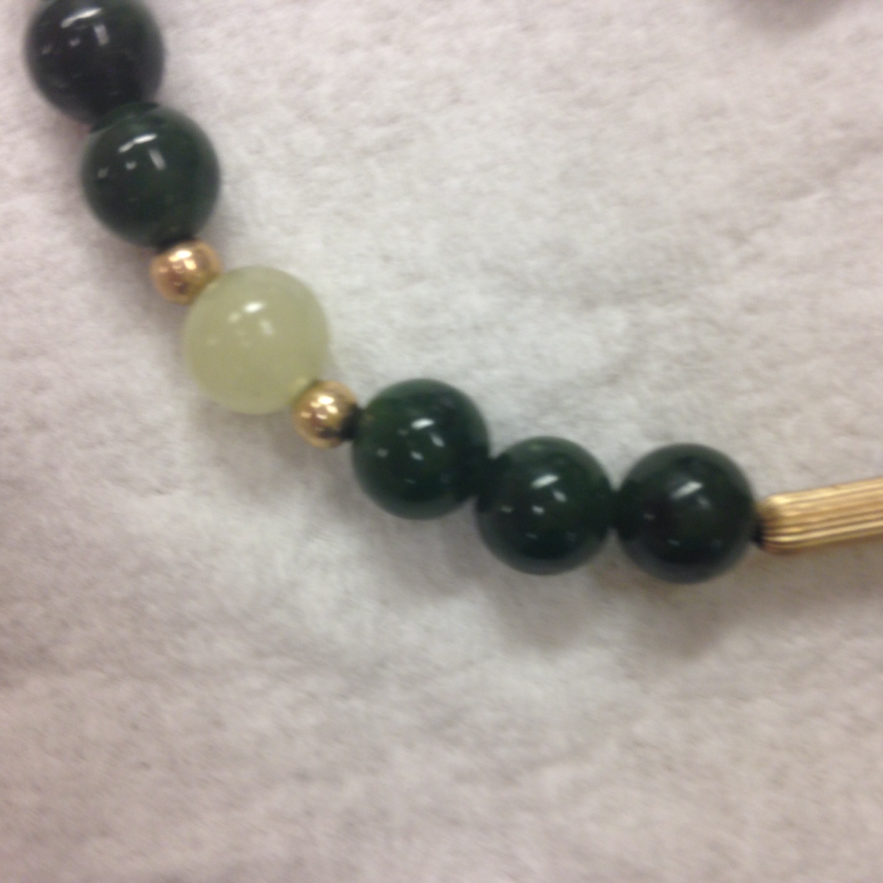 Vintage jade necklace, 30 inches long, 5mm beads. Gold vermeil bead throughout.