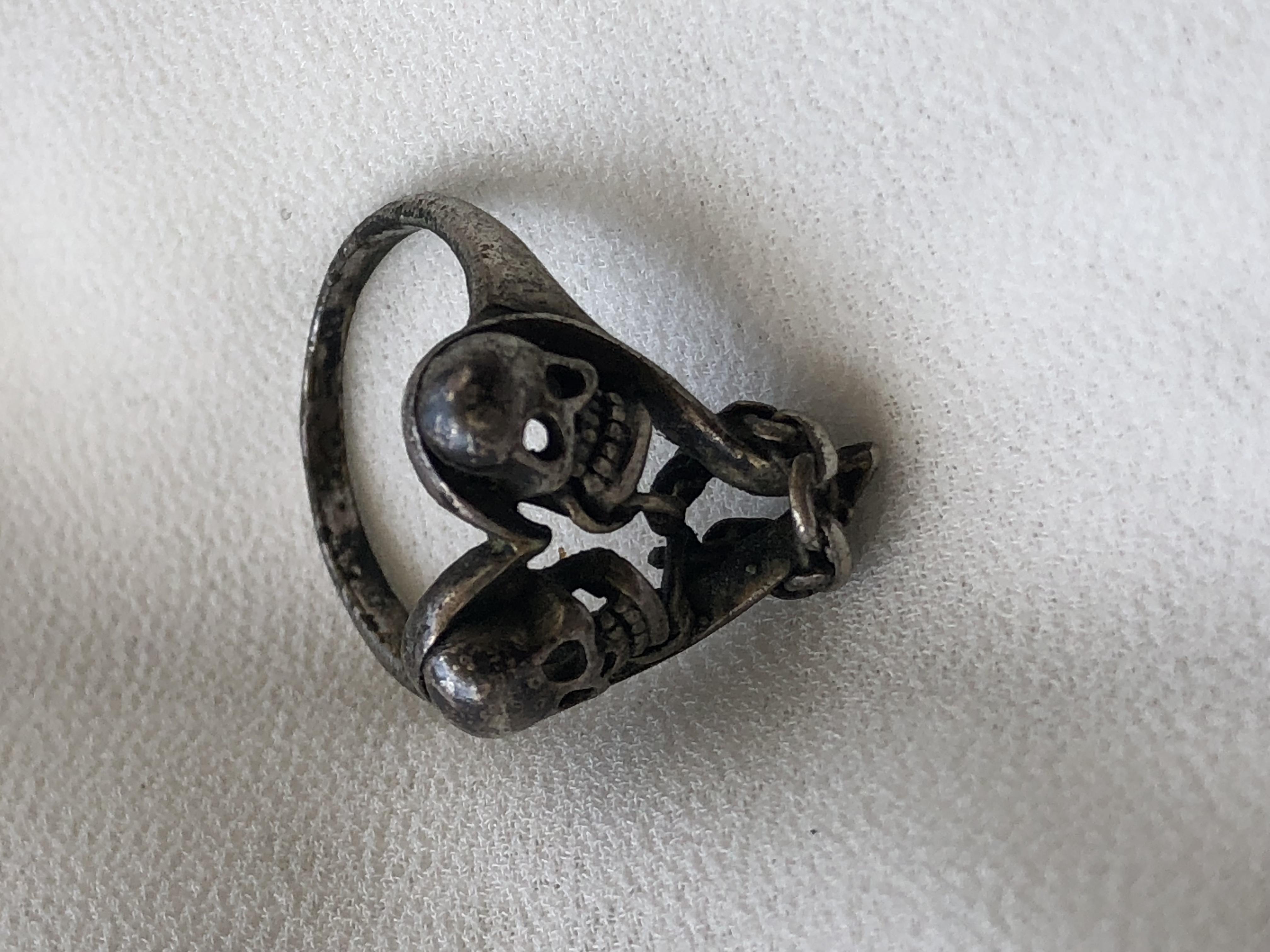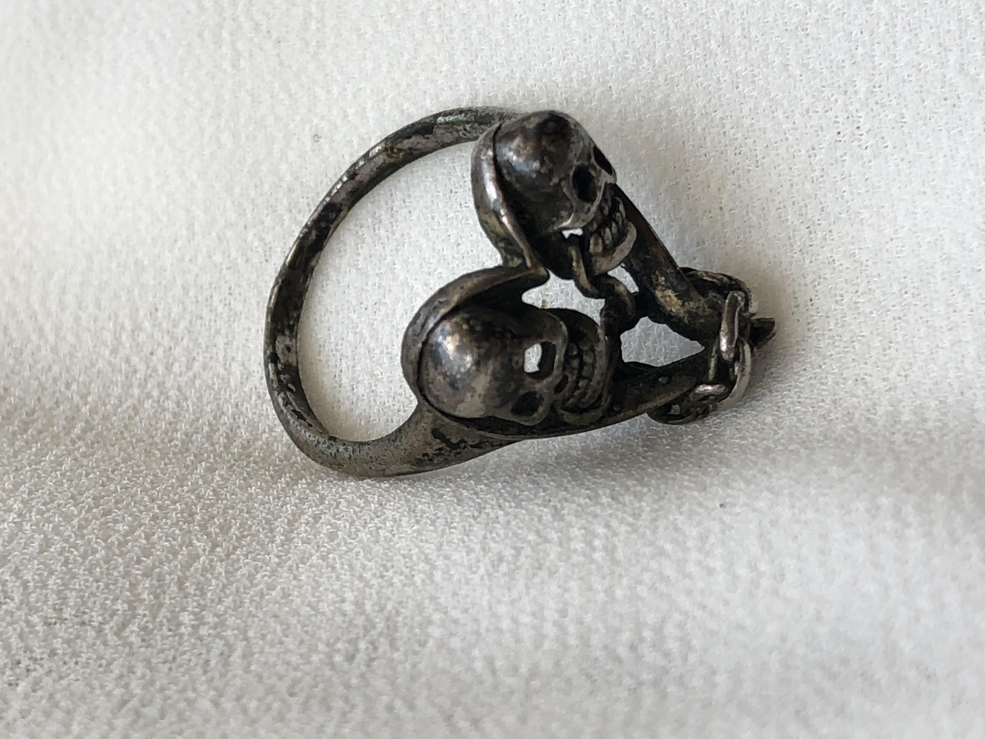 Re: Vintage 2 skull in heart biker ring