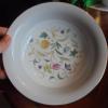 THE RIM IS GOLD? TRIMMED...WITH FLOWER BOUQUETS..AND DARK ROSE PINK DESIGN.