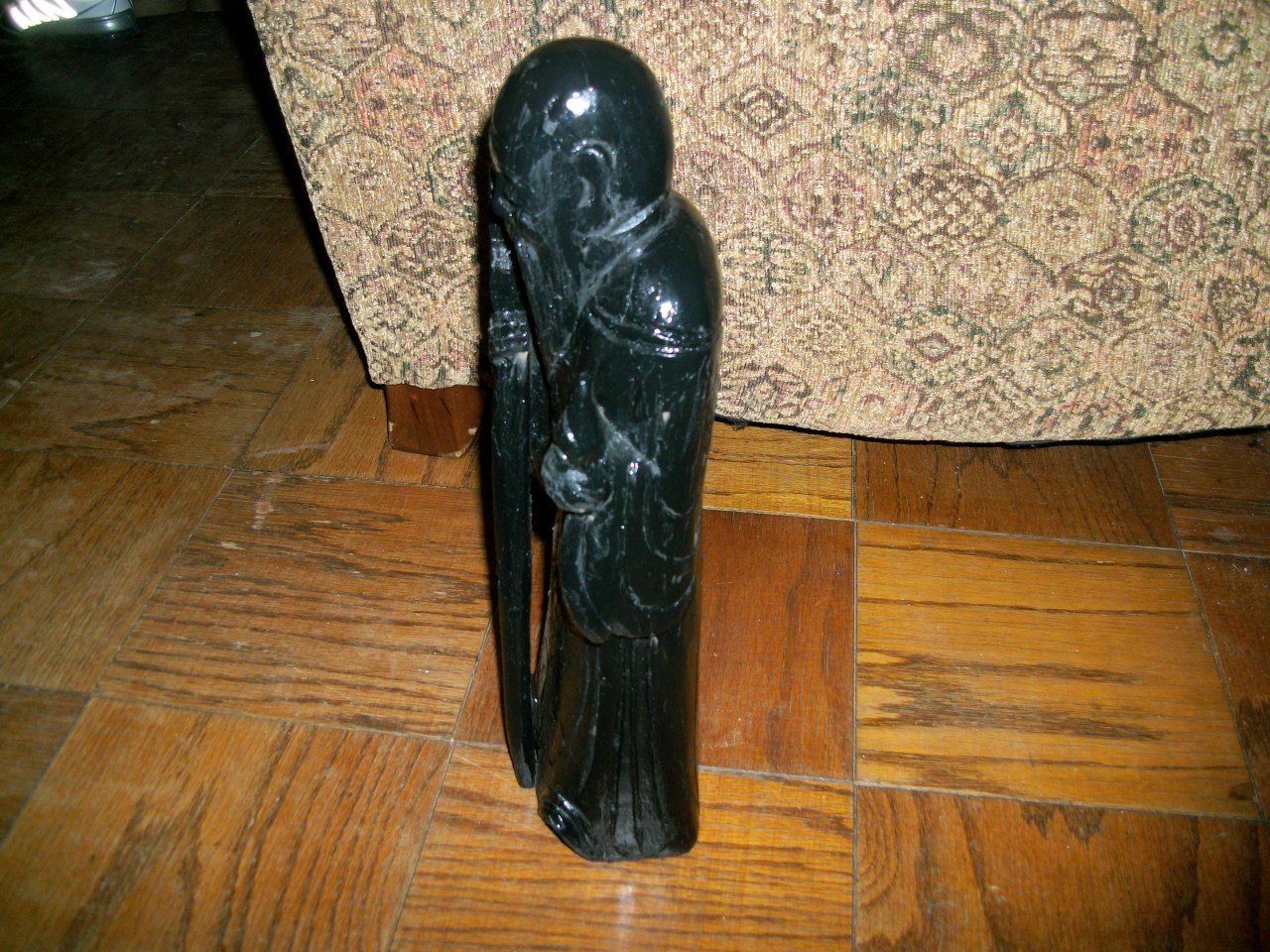 I recently received these two wood carved (I Think)Vintage Chinese Statues. They appear to be carved from box wood and then lacquered black which is chafing in small areas on both carved statues. I believe the one statue of the Asian Man with long beard is the Chinese God of Longevity, Shou Xing. I have no idea who the other statue may be. Shou Xing measures approx 15 inches tall, the other 15.5 inches tall. The bottoms of the statues appear as if maybe they had been trimmed with some type of saw at time of making.(See Photos) Each is pretty heavy. I estimate each of their weight at around 2-3 lbs. There no markings as far as makers type mark.