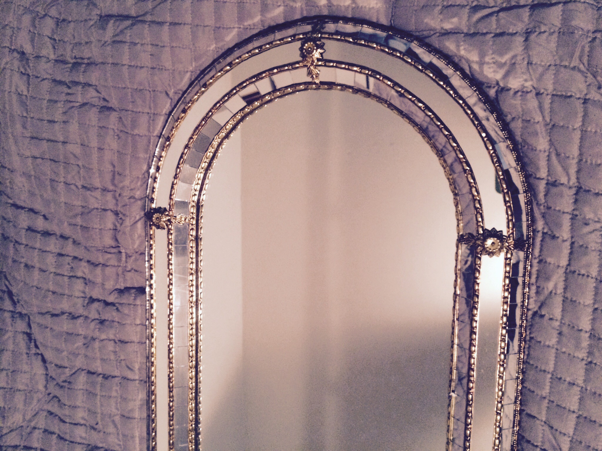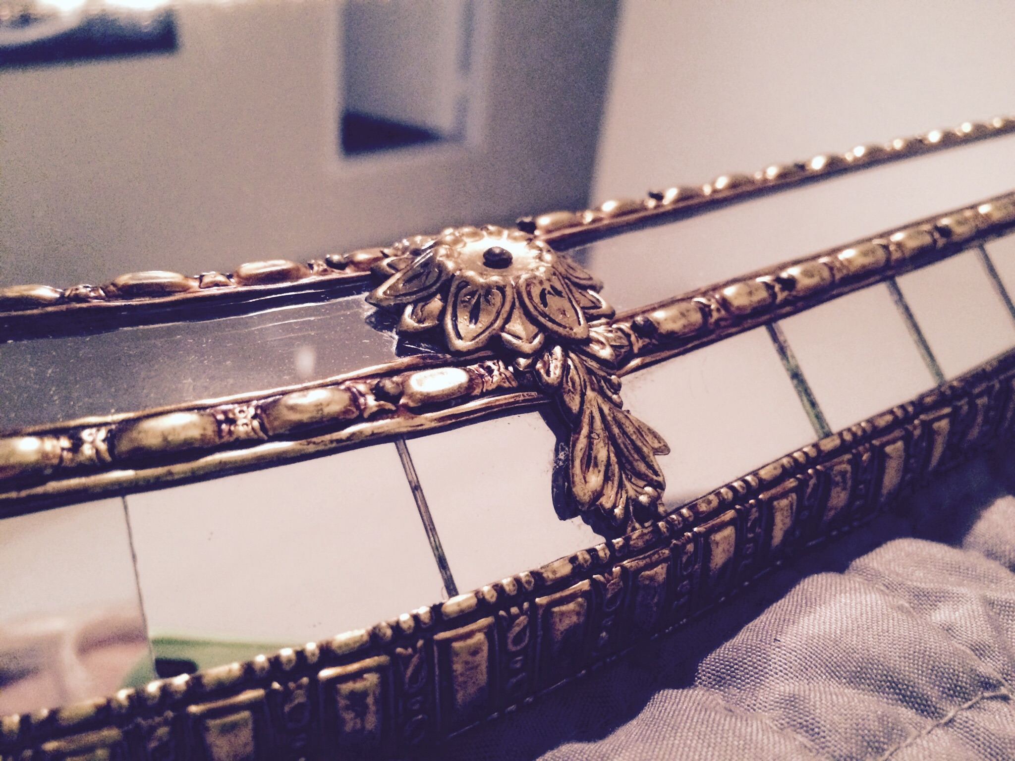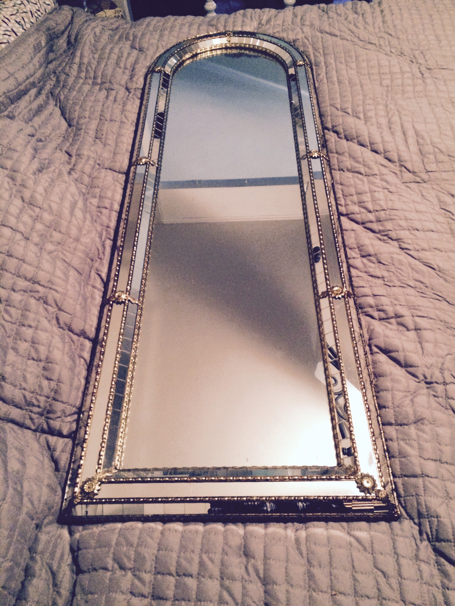 Vintage Art Deco Baques Mirror- Assuming it's originally from 1930's as I have found similar items from that decade. Gilt frame with precisely placed mirror pieces. Almost perfect condition.