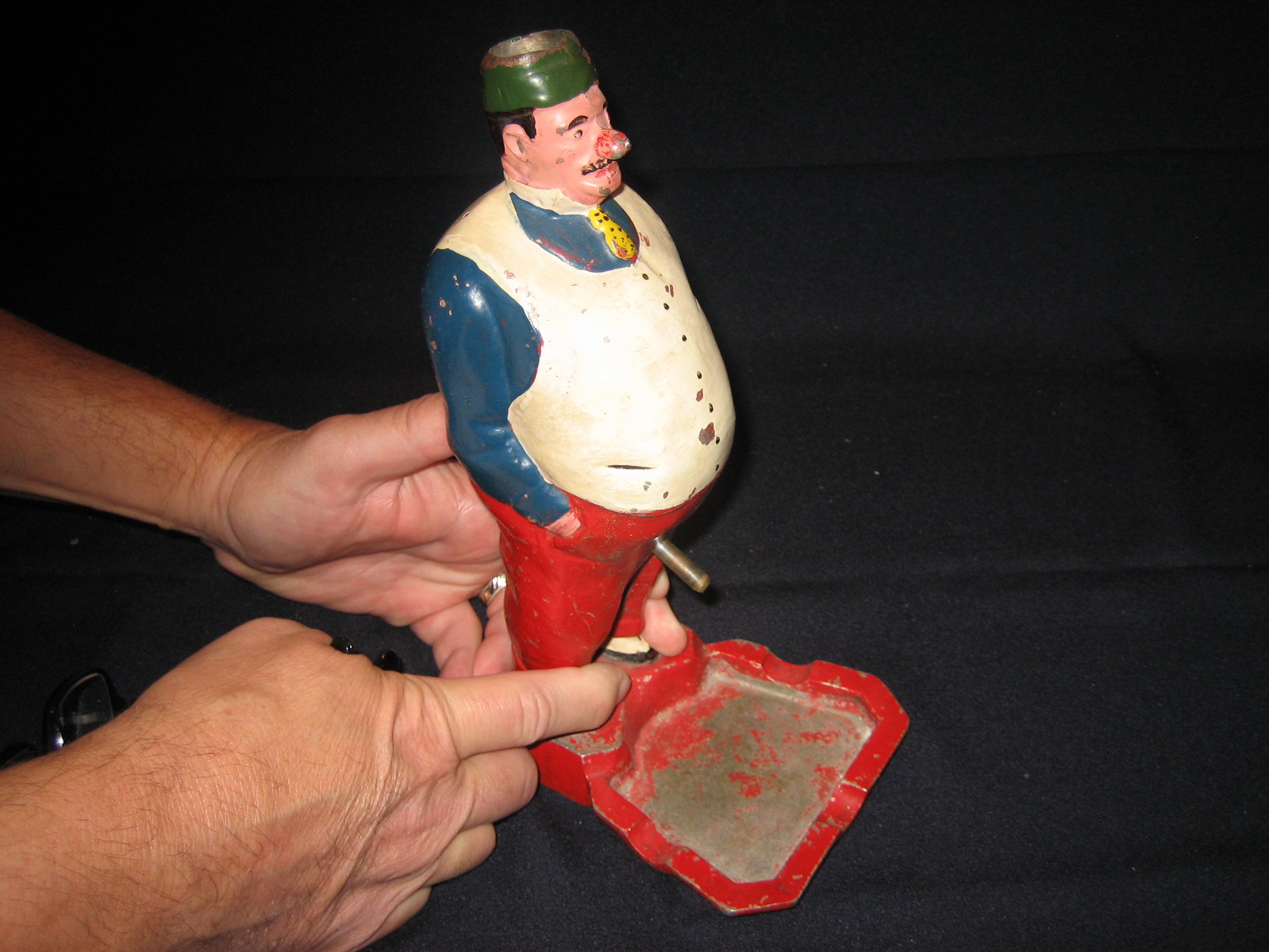 approx 12" tall figure, painted, looks like a clown or WC Fields.