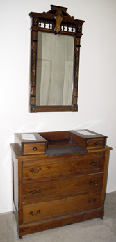 I know absolutely nothing about this bedroom set. My parents bought it used in the late 60's-early 70's. As far as I know, everthing is original, including the drawer pulls.