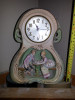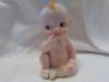 Item appears to be a vintage Japan Kewpie. Made of hollowed bisque w/hole on the bottom and JAPAN stamped in red. Thin and potbellied when turned on its side. The only color on the back is the continuation of the pink "diaper." Minimal/minor paint ruboff: 1) forehead curleycue, 2) tip of curl on left side of head, 3) center back of diaper. These 3 spots of ruboff are tiny and do not minimize eye appeal of the piece.