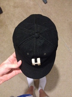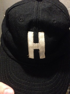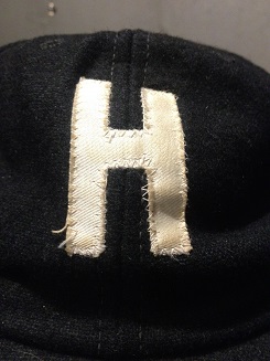 This vintage black hat has a white letter "H" on it. I do not know what it stands for, and there is no manufacturer labeled anywhere throughout the piece. The only words on it is the name "J. Barry" which is written in marker of some sort on the inside, but is very faded. The inside of the hat has a leather band around where the head would go and an elastic band on the back. It looks similar to the vintage 1930s Harvard baseball hat, but it is black, not maroon. Any help on this item will be appreciated! Thank you!