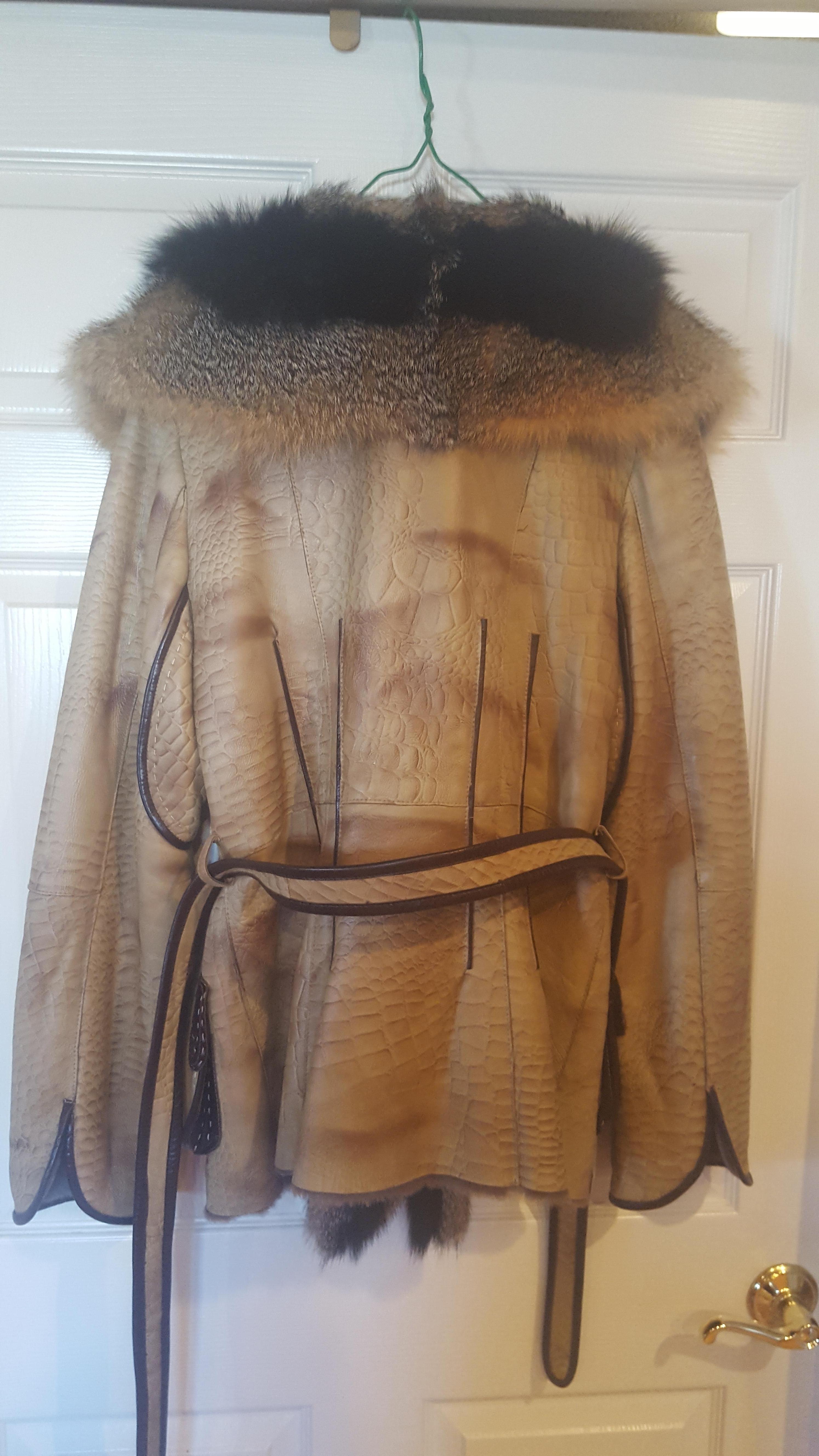 I found this jacket at a Flea Market booth. It is a 10 out of 10 condition. It looks brand new. I tried searching for the clothing label but found very little if none results. The collar is fox fur