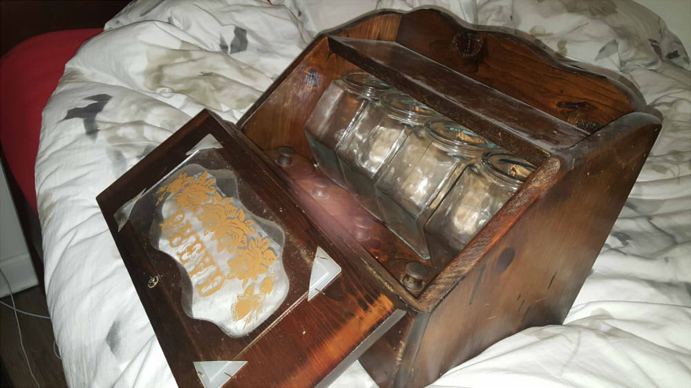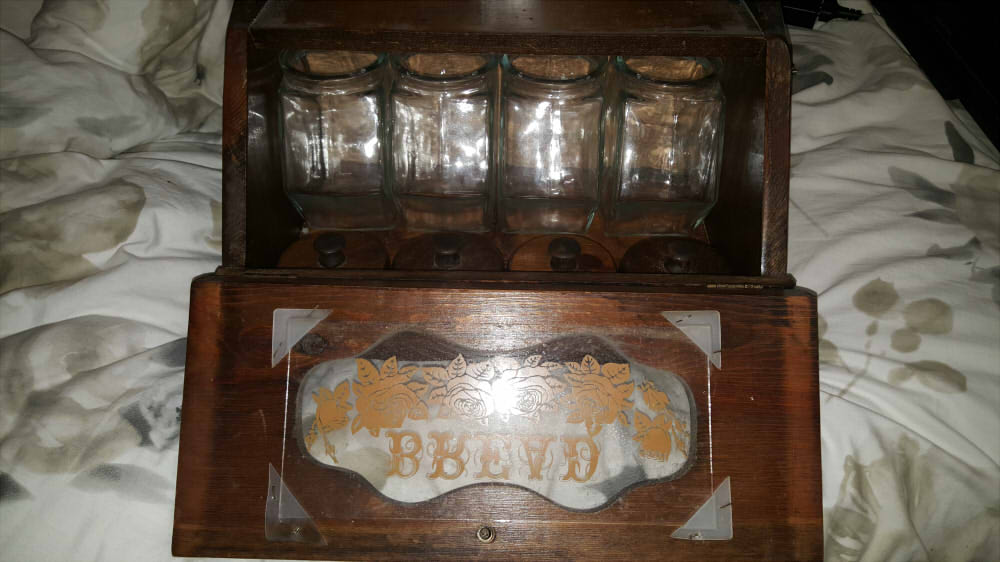 Vintage Bread Box with Glass Jars