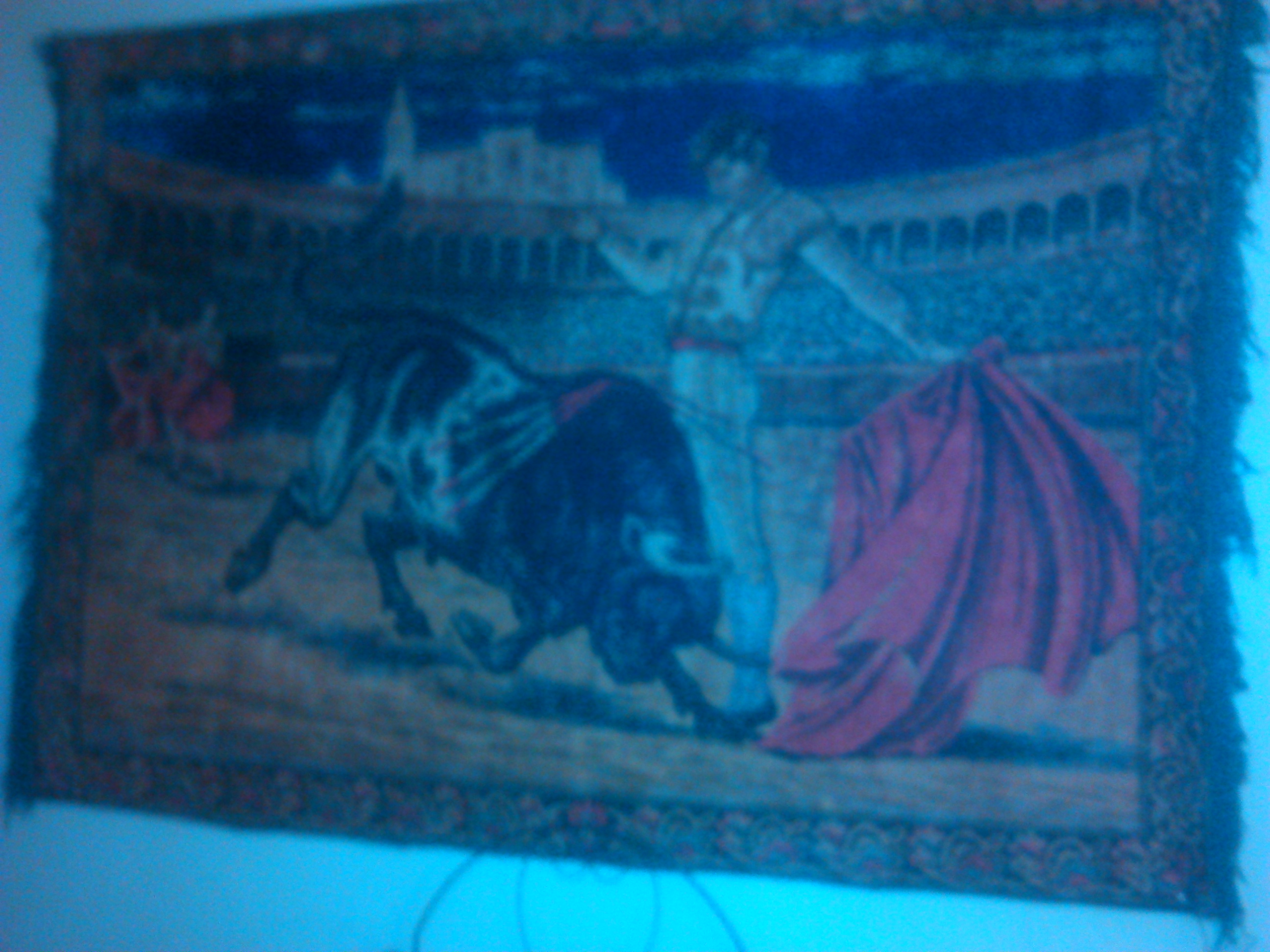 Vintage bull fighting rug, ive had for over 31 years.