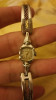 Dainty watch is made of 14K white gold, two diamonds on each side (about .10 carat together). Name "Bulova" and Number 804797 imprinted on back. Does not have original wristband. Does not work, but can probably be repaired.
