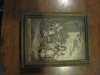It seems to be a B&W photo portrait of woman in a wooden frame. The frame is damaged in quite a few places and dirt seems to have gotten into the inside.