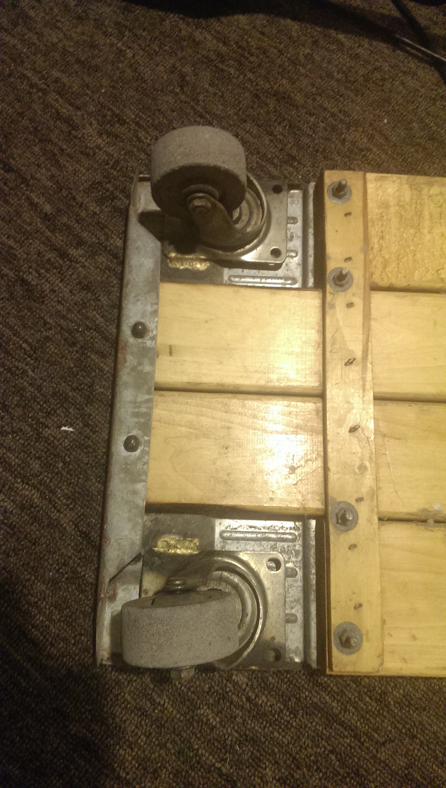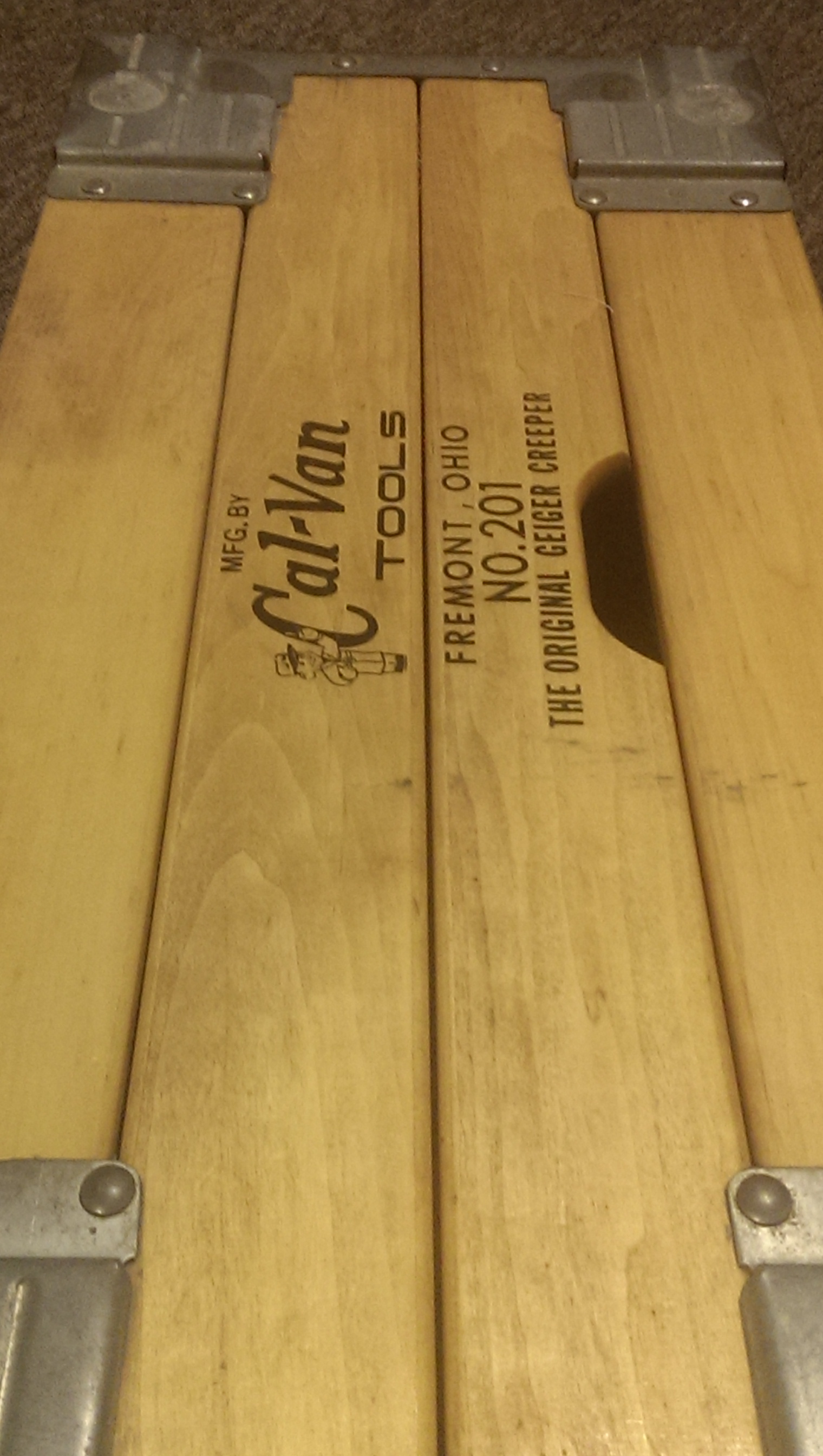 Old Cal-Van creeper in excellent shape. Thought it was all original, but looks like somebody brazed different casters under it? Maybe?