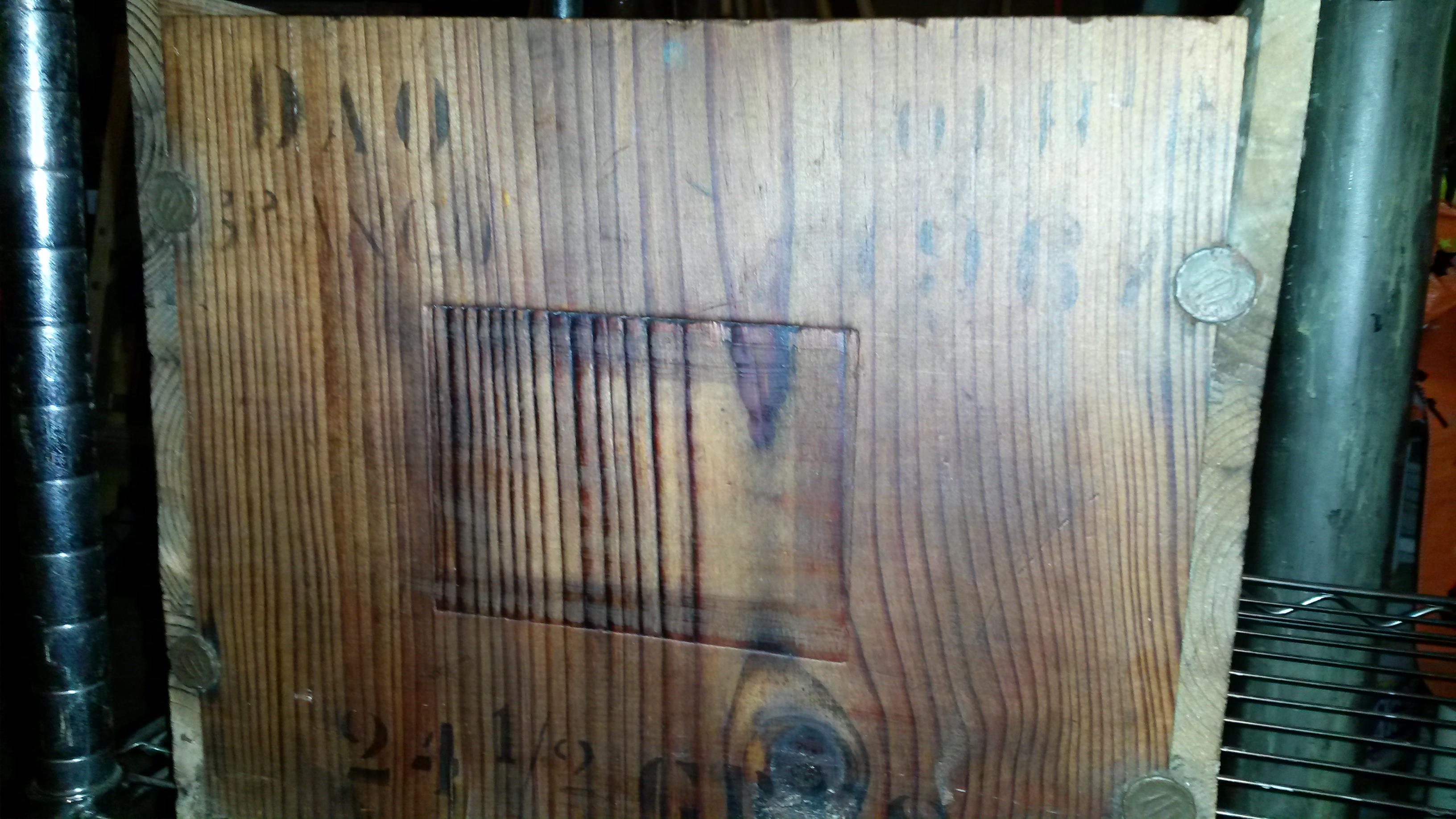 Wood with metal emblem tacks and nails