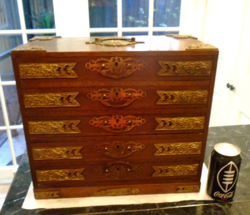 5 drawers. Felt lined. 2 keys. It is actually a little darker in color than the picture appears. How much would this be worth? Thanks!