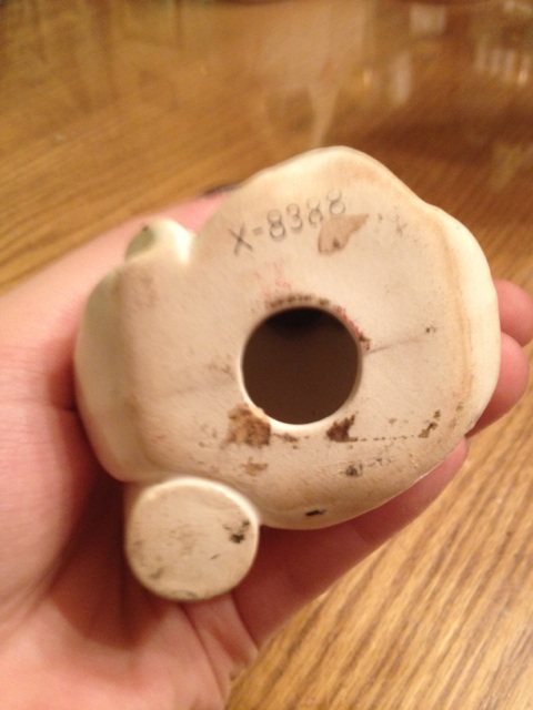 This was given by my grandmother, it is a cute candle holder. If you can see how small the candle holder truly is it would authenticate that this is a vintage piece. There is a number on the bottom that reads X-8388. So I am assuming the X is for Christmas? Not sure of anything at this point so any help would be awesome. Thanks :)