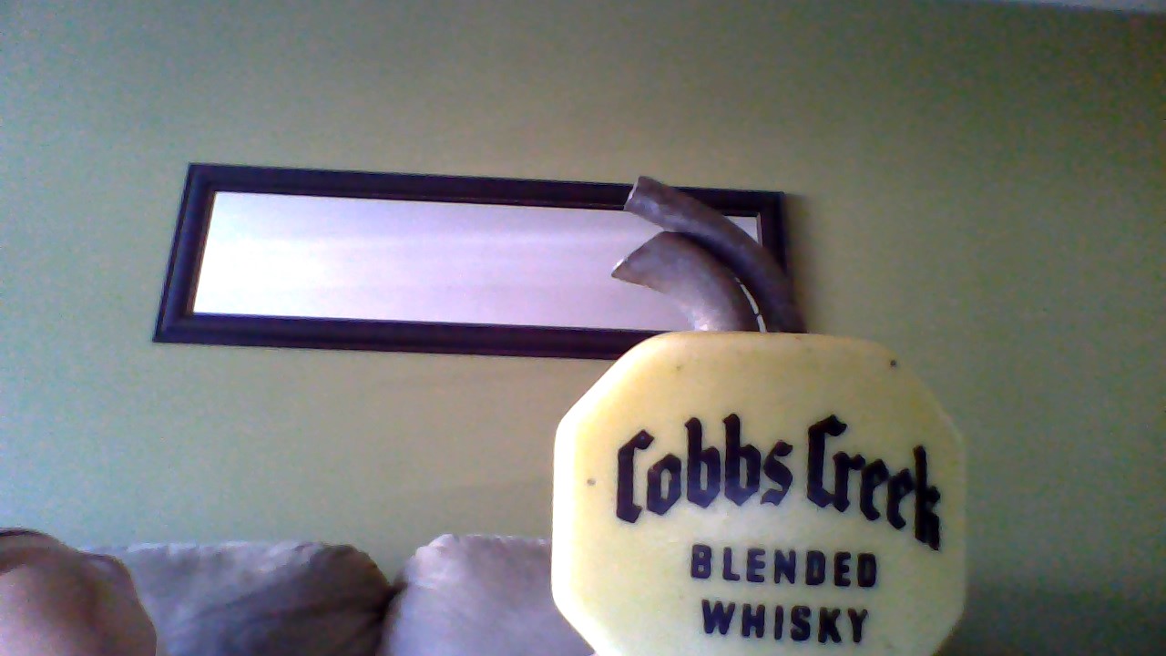 This whisky cheater has 2 spouts, porcelain body sitting on top of cork. The writing is in print (not cursive). The other Cobbs Creek cheaters I've seen has had cursive writing. I'm told this cheater is from 1930s. Thank you for your help.