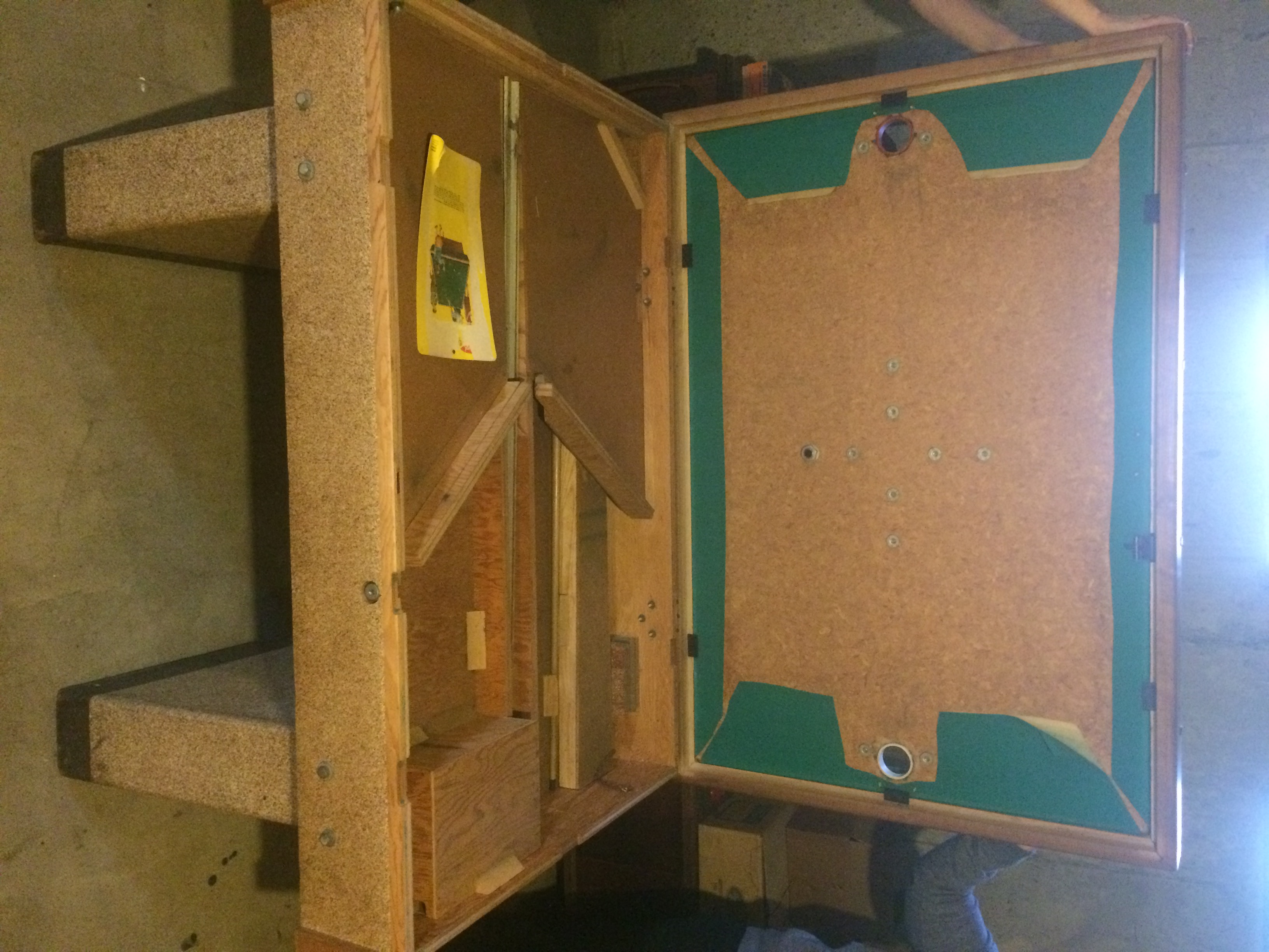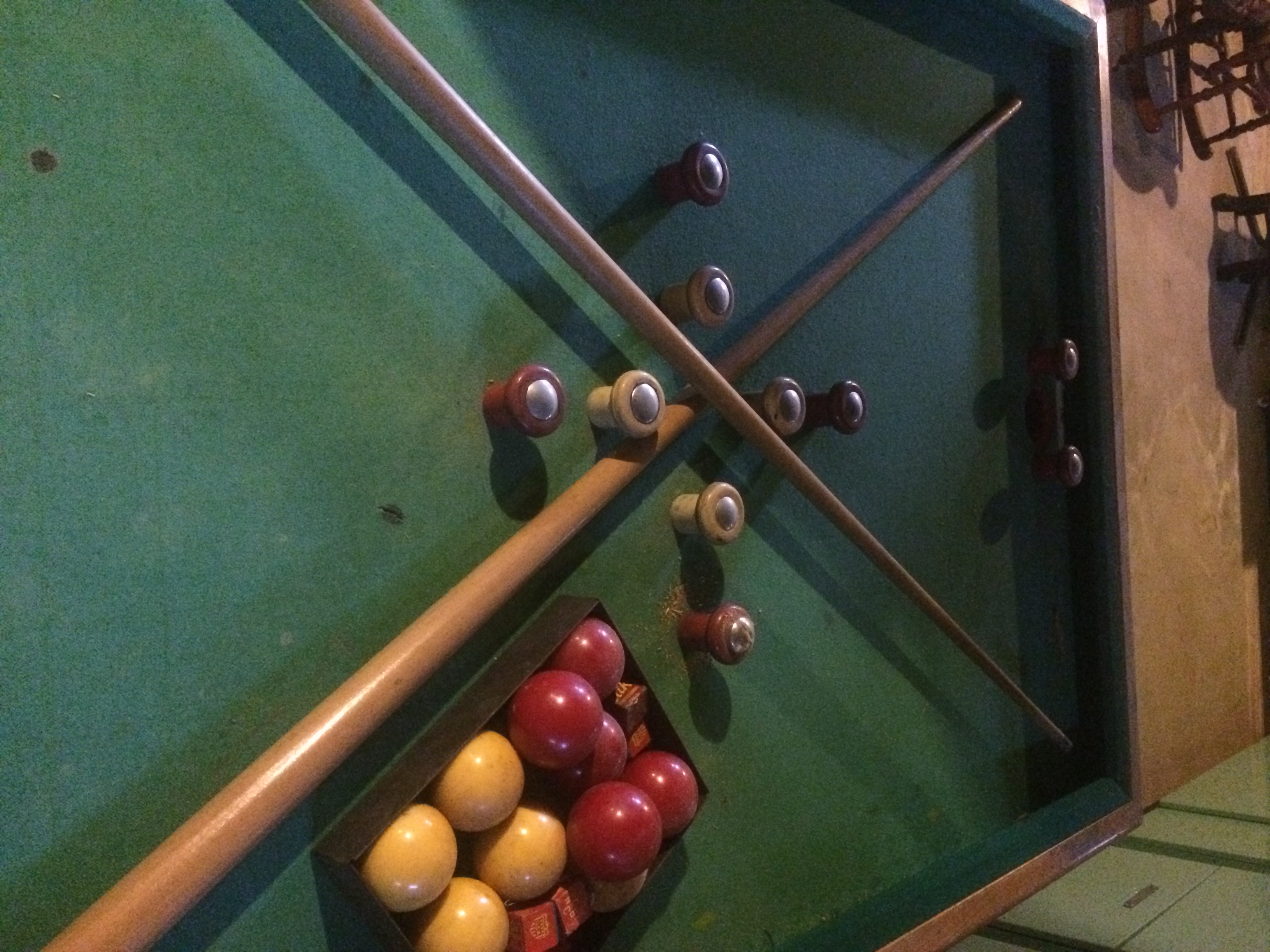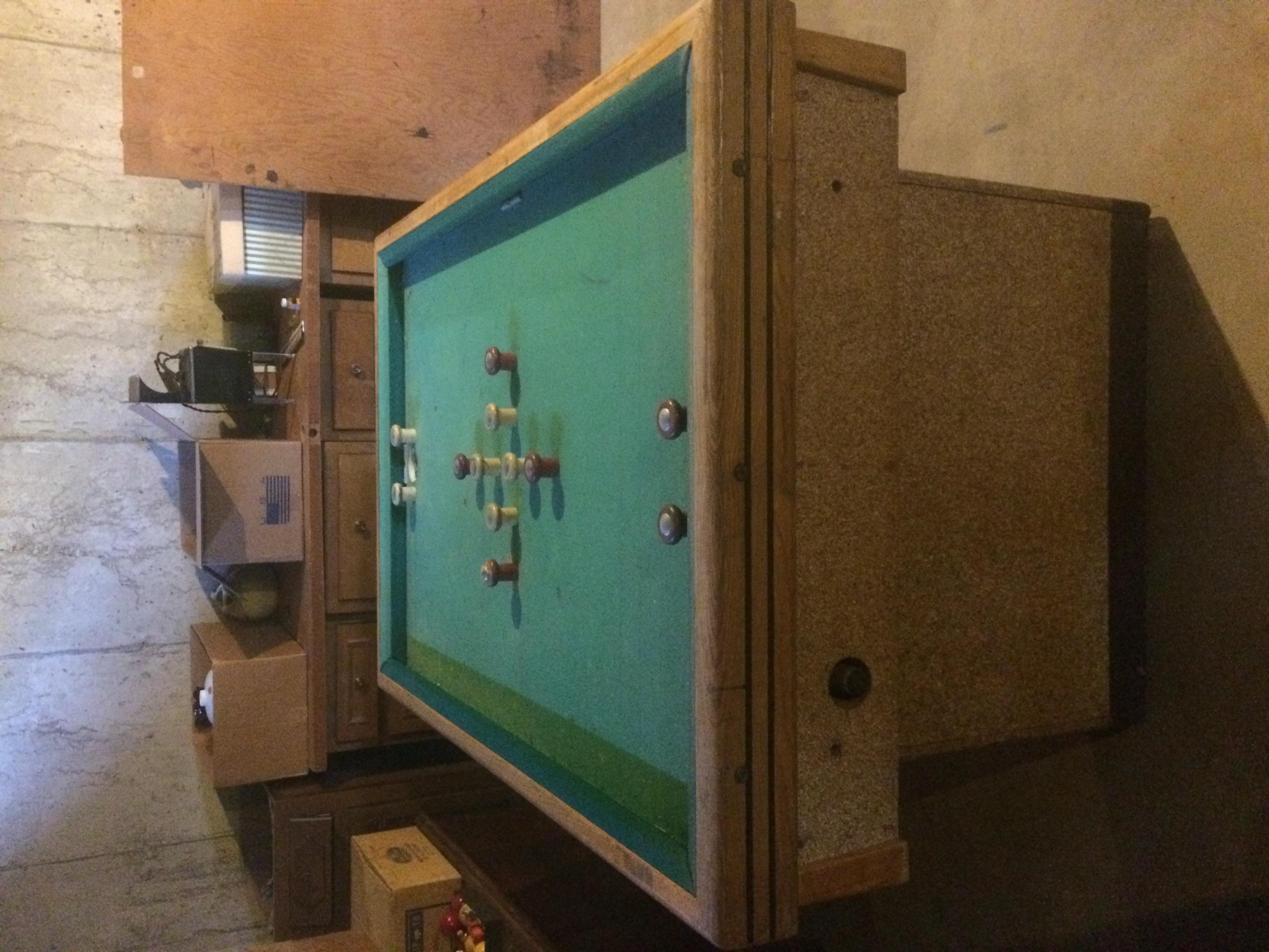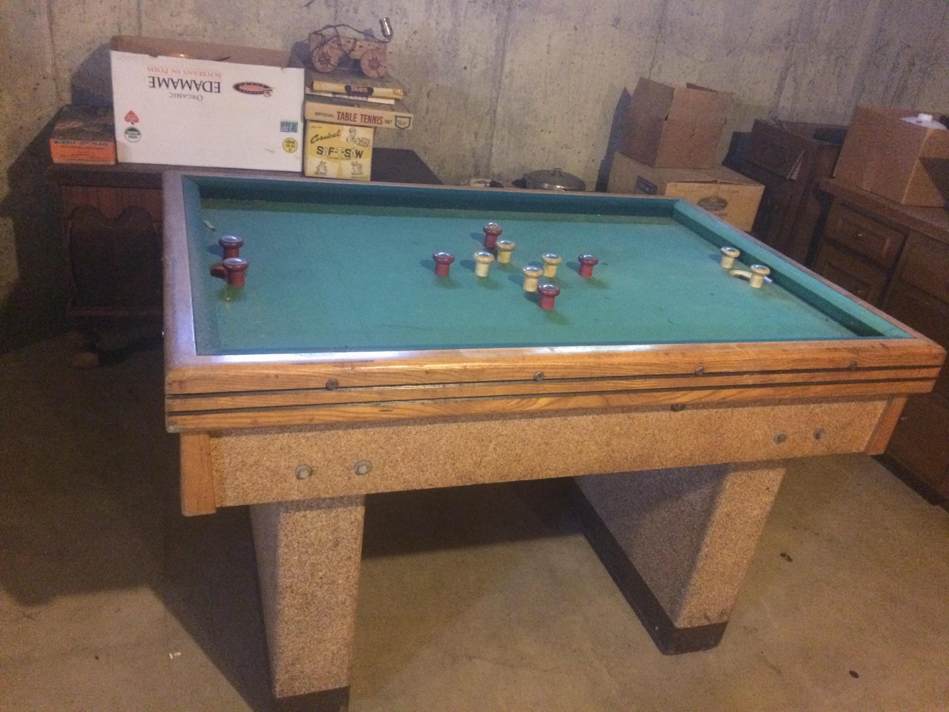 Prohibition era bumper pool table. Originally in a bar in Chicago, then moved to my Grandparents home/bar during prohibition. Looks to be made by Chicago CoinOP or Genco. There are no labels, model #'s or any other identifying thing that can be found on it.
