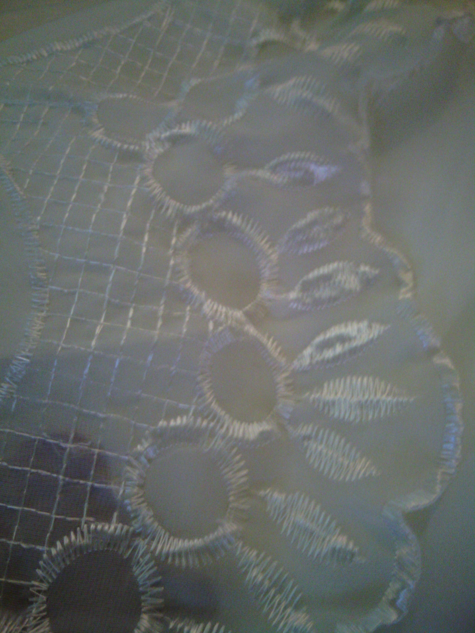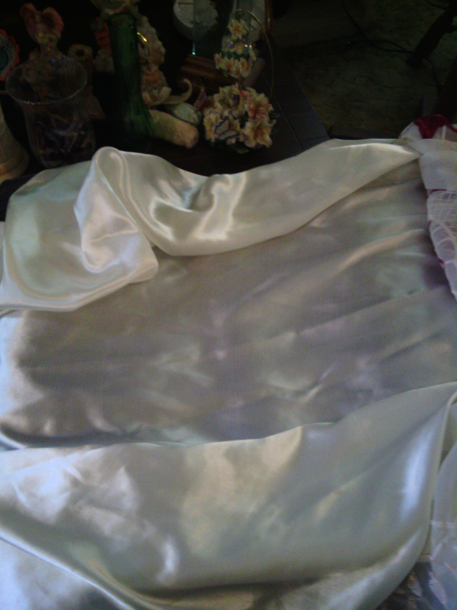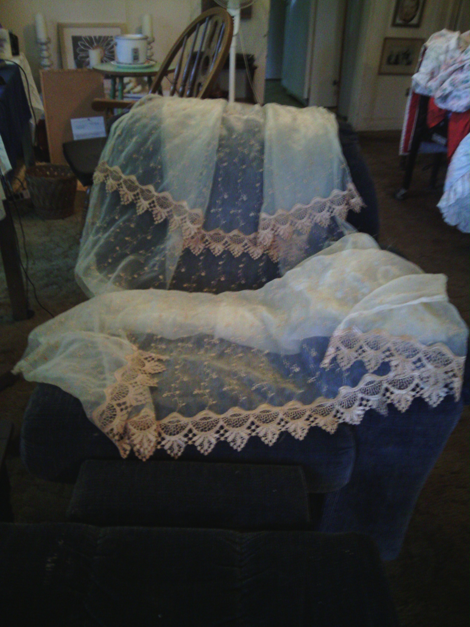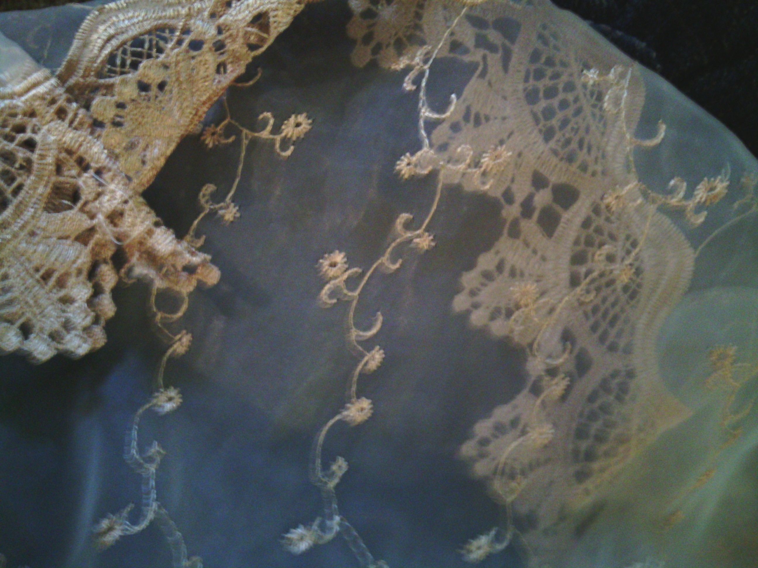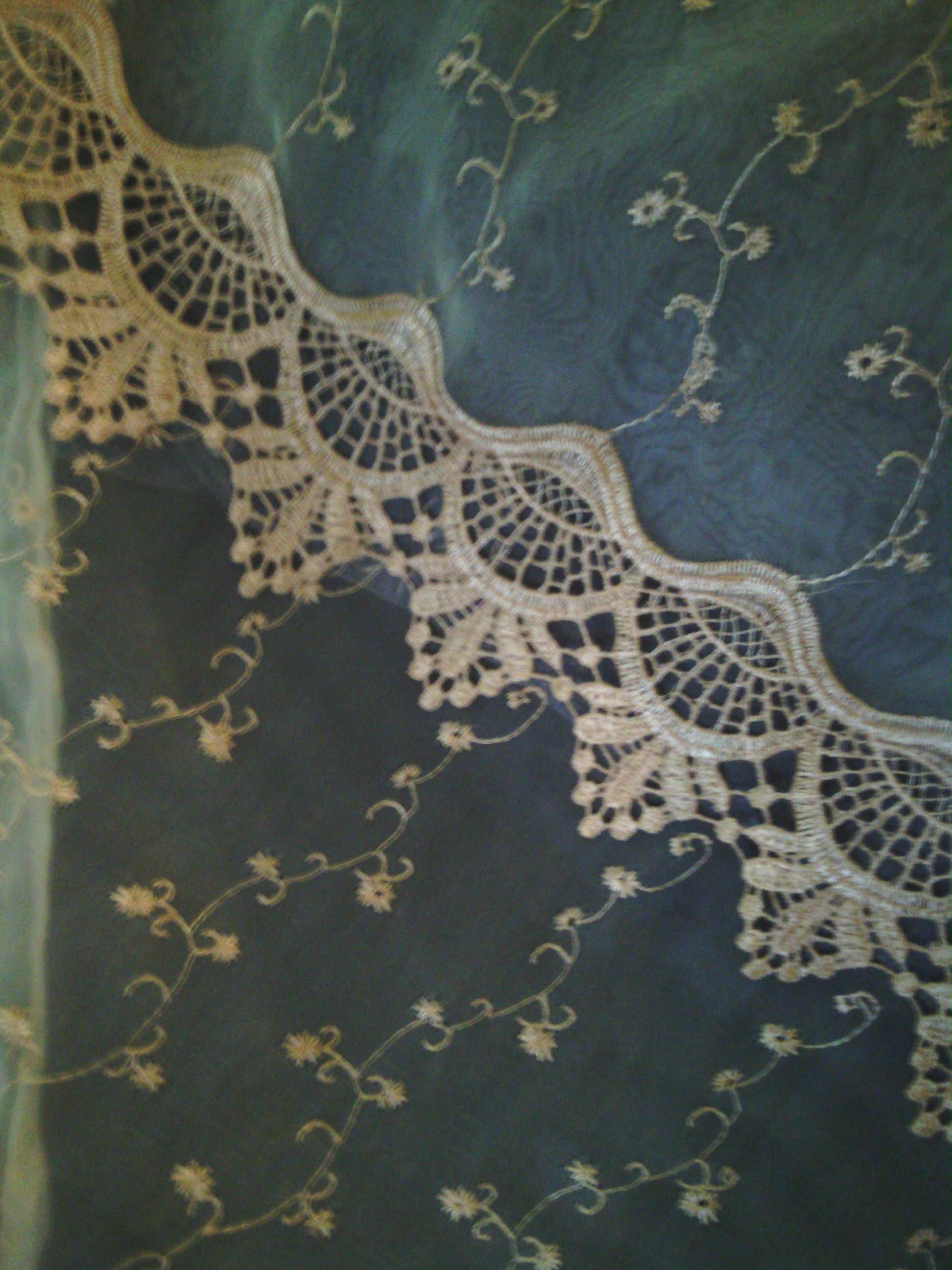 I am not sure when they were made nor by whom. Impute would be nice. Red lace/ 4 to set. 80 L X 58 W. White Lace/ 4 to set. 74 L X 50 W