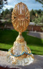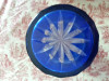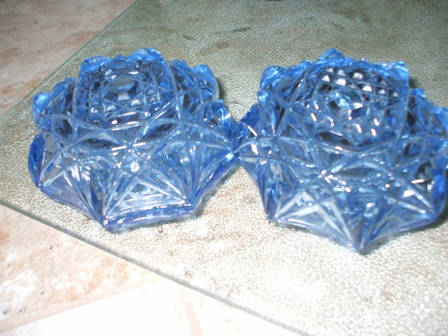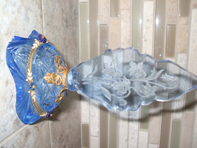 I have a dresser set from Paris during WWll. It is 3 pieces of blue Czech glass and the perfume bottle has an original stamp. The Dauber /Stopper of the perfume bottle is etched with flowers and the bottle is draped in gold.It is very ornate. There are two additional jars of the same blue crystal glass handcut. The jars have a sort of star design in the glass. They are mint Condition slightly heavy and beautiful. I believe they are very old but could find no date. The stamp is worn but says genuine handcut crystal Czechoslavakia. Any ideas on value?