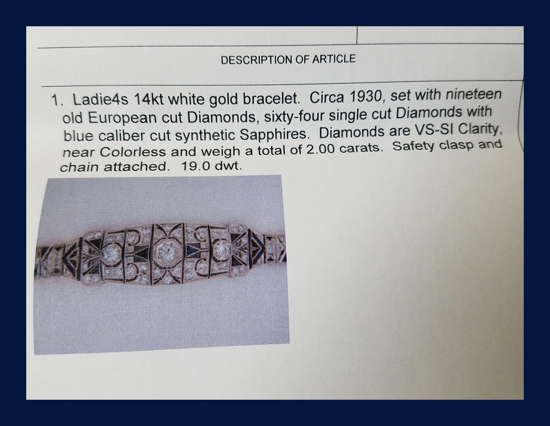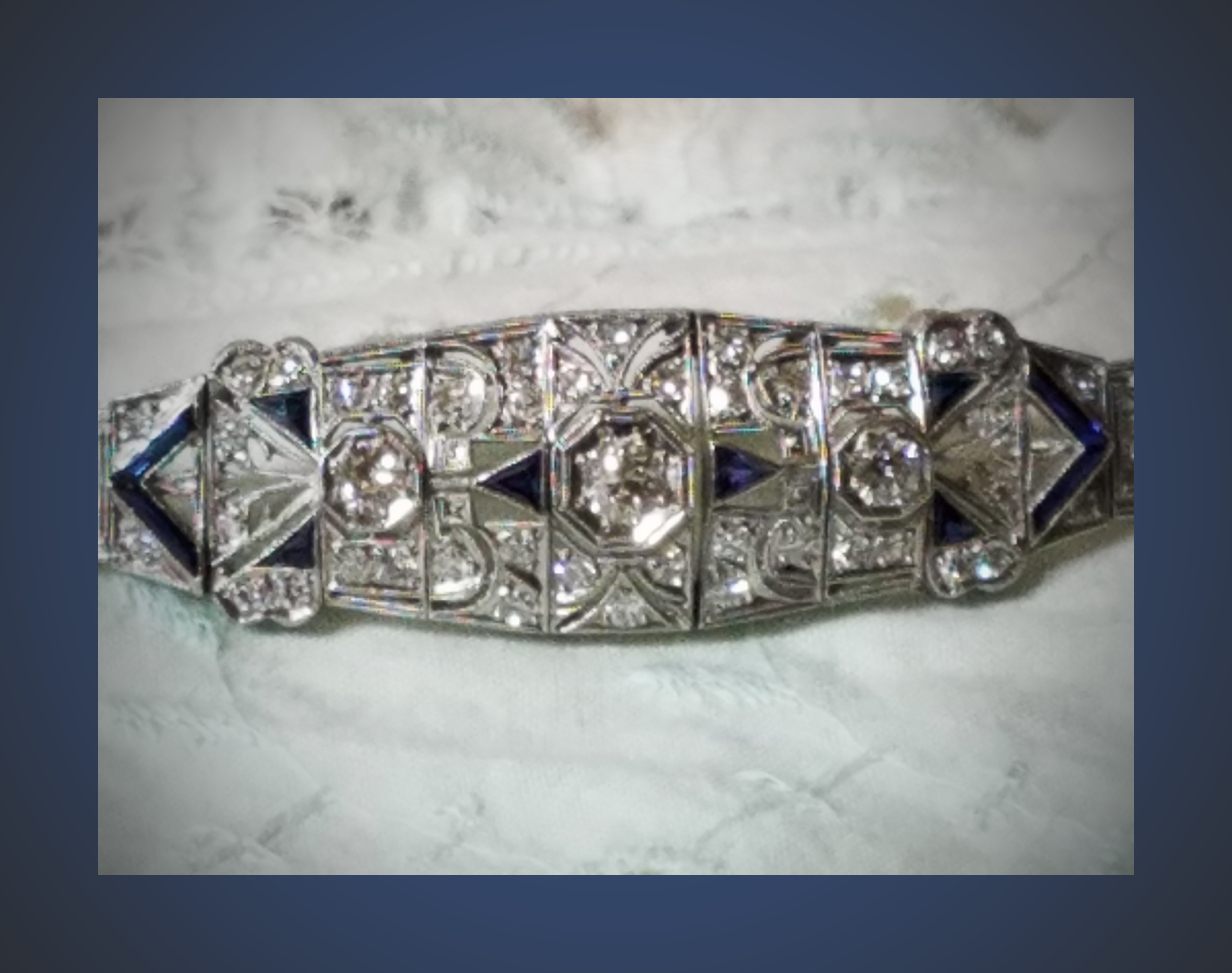 Circa 1930's ladies 14ct white gold bracelet.....see attached photo for full description.