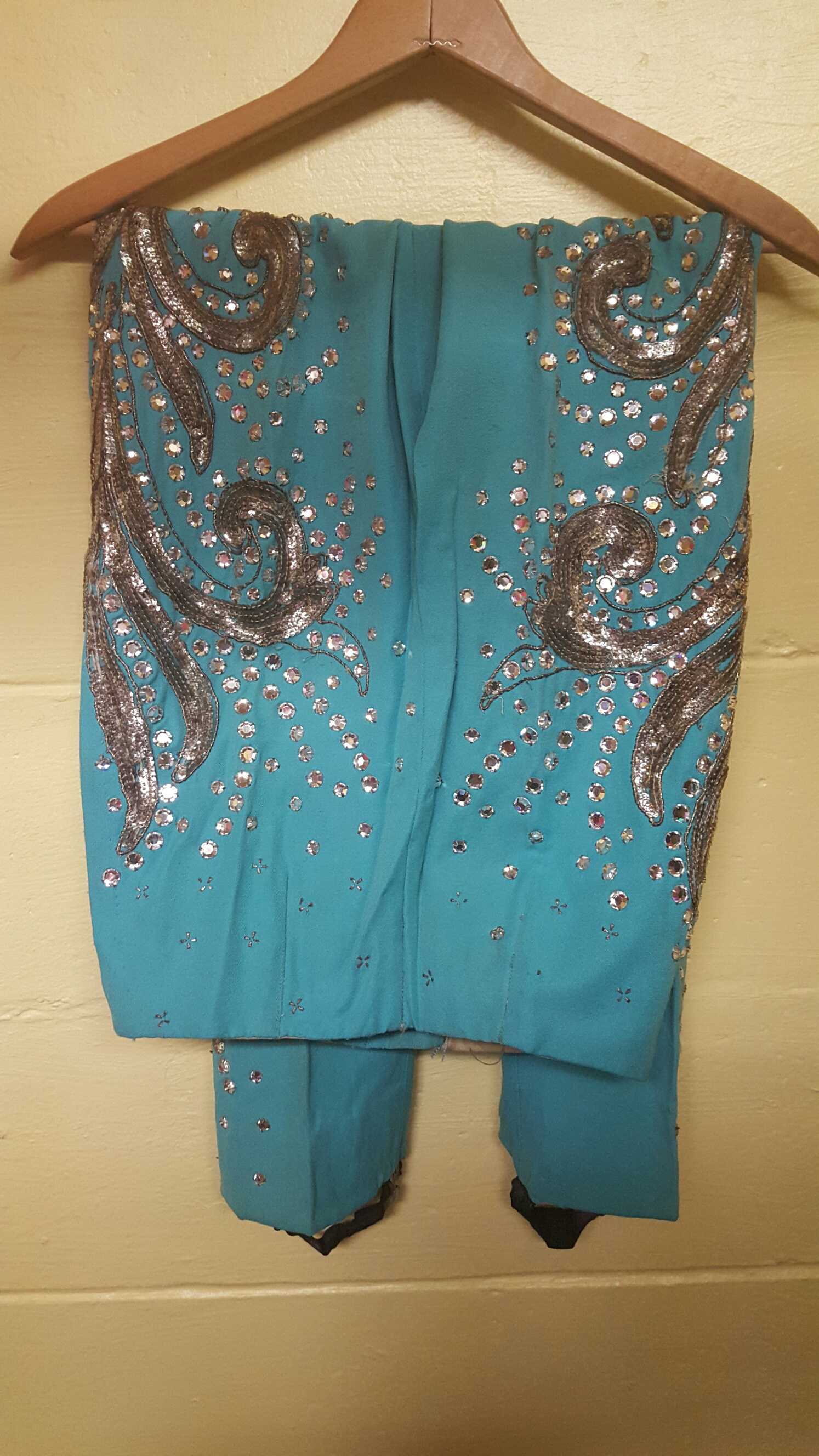 Vintage circus costume from the 1950s made by the Eaves Brooks costume company from NY possibly for ringling bros. The costume consists of pants and jacket with eaves-brooks label in the jacket