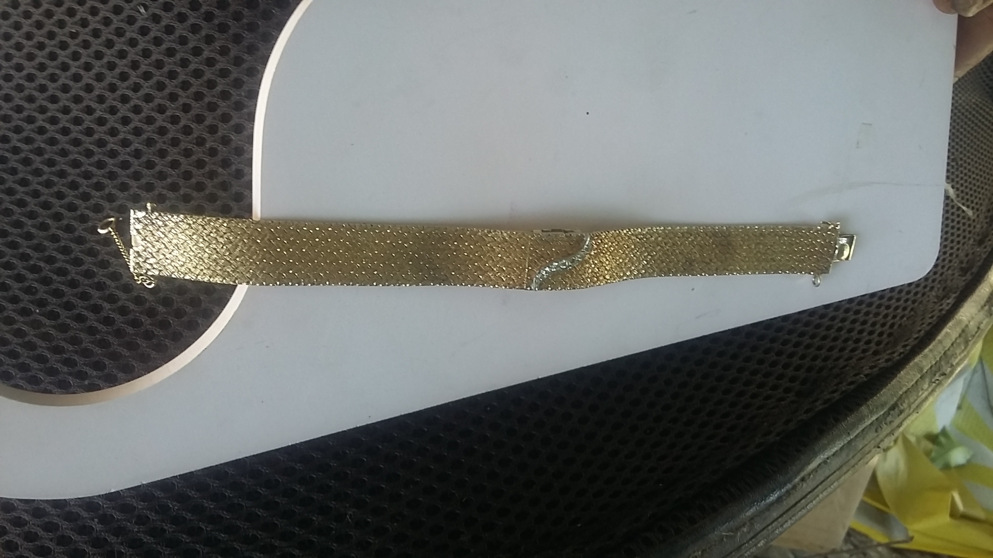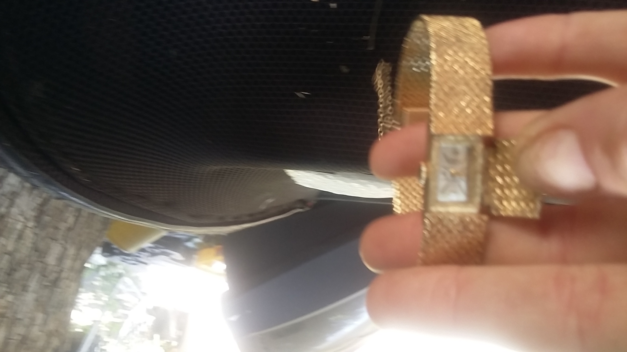Euro Geneve brand, 24k, 7 diamond chips. Watch face is hidden under lid of bracelet