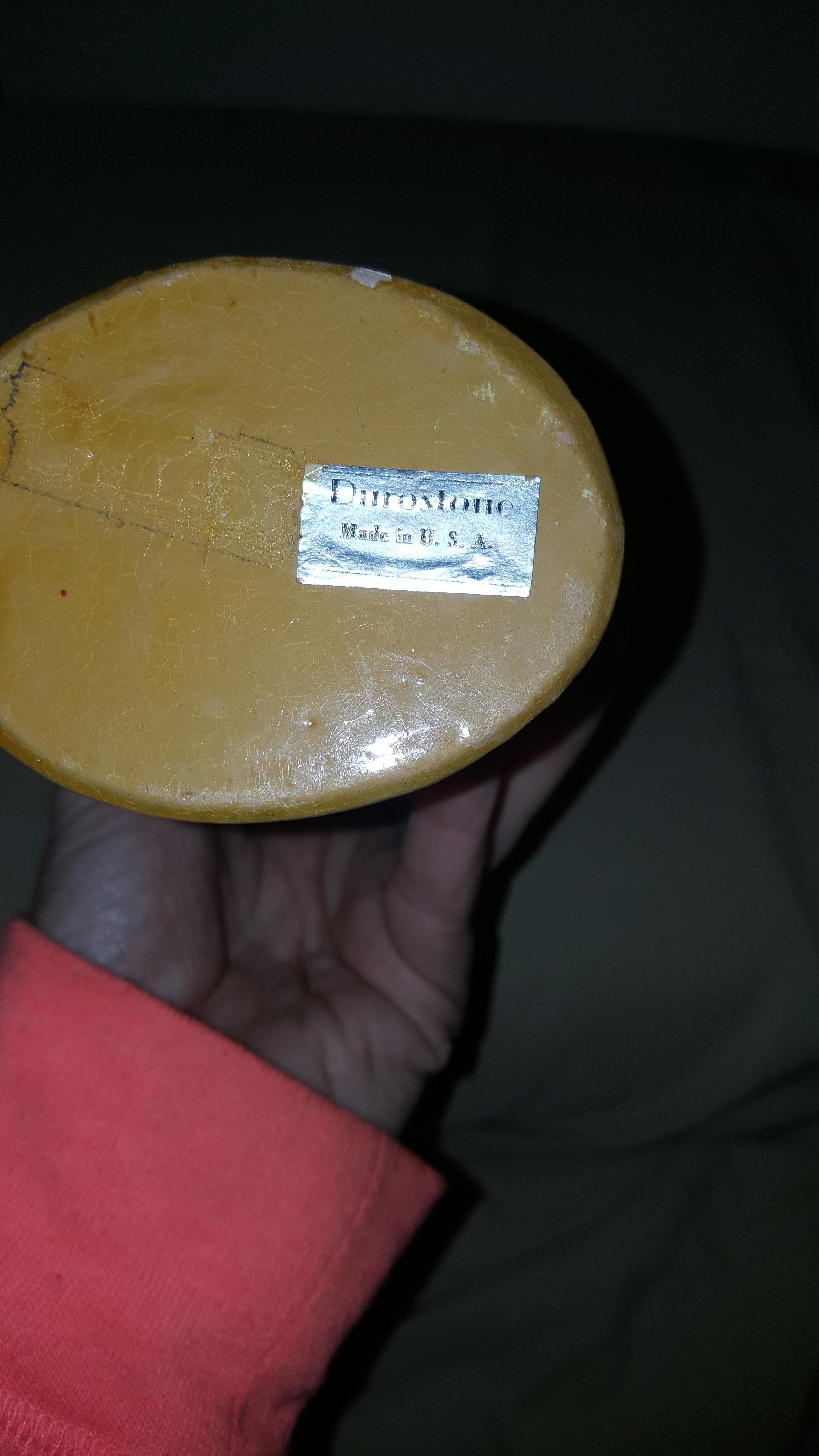 Durastone was made by Austin Productions a American company that created a very large inventory of decorative figurines and garden statuary. it appears that they were in operation from around the late 1960s to the mid-1980s. Values are modest for such pieces, usually under $30.00.