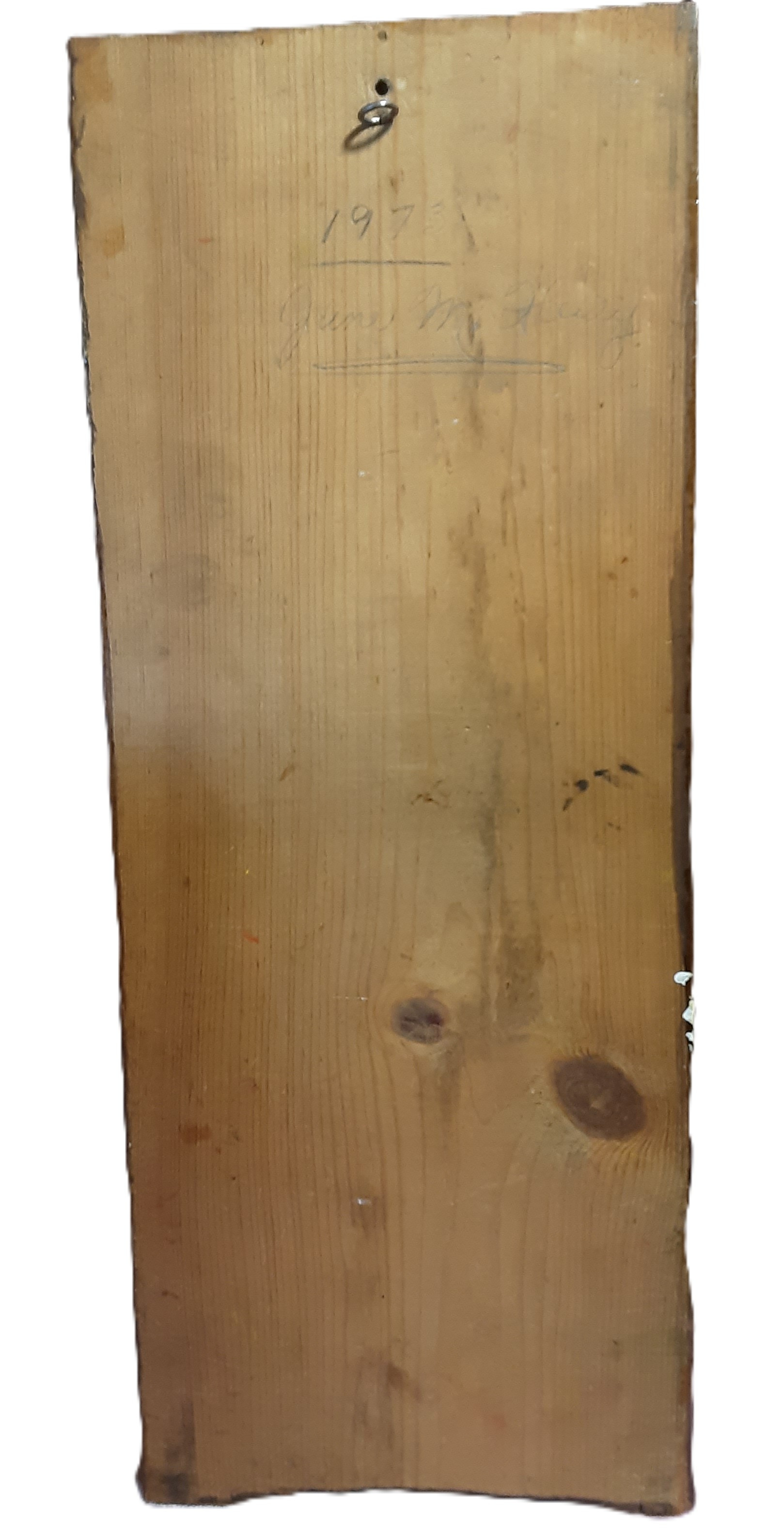 This work is a charming example of 1970s North American folk art, likely created for personal enjoyment, local art markets, or community craft fairs. The style features a clear appreciation for botanical subjects and traditional domestic themes, rendered with bold, unblended colors and a clean composition.