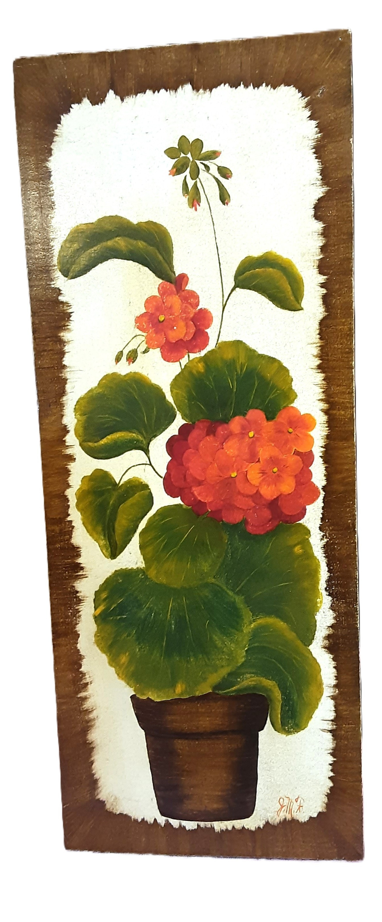 Vintage Folk Art Painting of Geranium in Pot (1973)