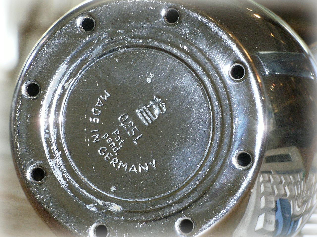 I belive this is a silver plated item. Did a little research and it seems mine is missing the Coaster like rubber piece on the bottom. And mine is smaller then the few i have seen online. Also Mine is Pat. Pending. Does anyone know what the value of this item is? any value?