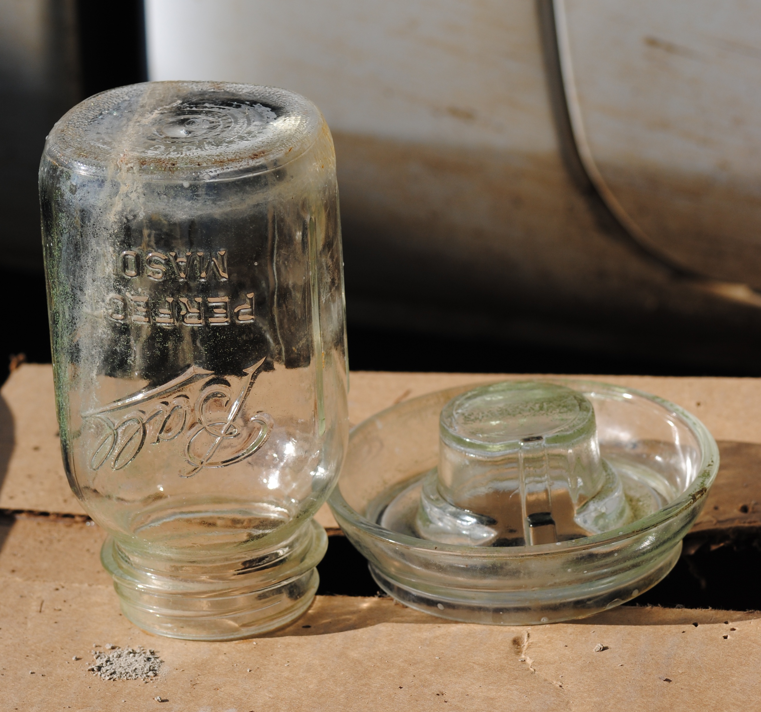 They are a tough sell at any price. Once a very common farm and barn item, the supply far exceeds the demand today. Can usually find them for just a few cents to a few dollars each at mid west flea markets. The jar is even more common.
