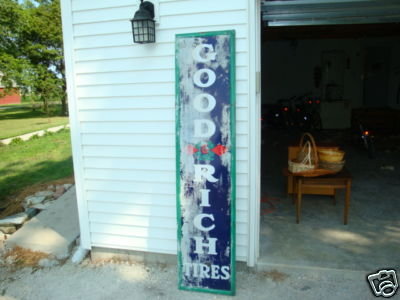 Old Porcalin Sign found in the woods, Goodrich Tire. In Great Shape, Over six foot long
