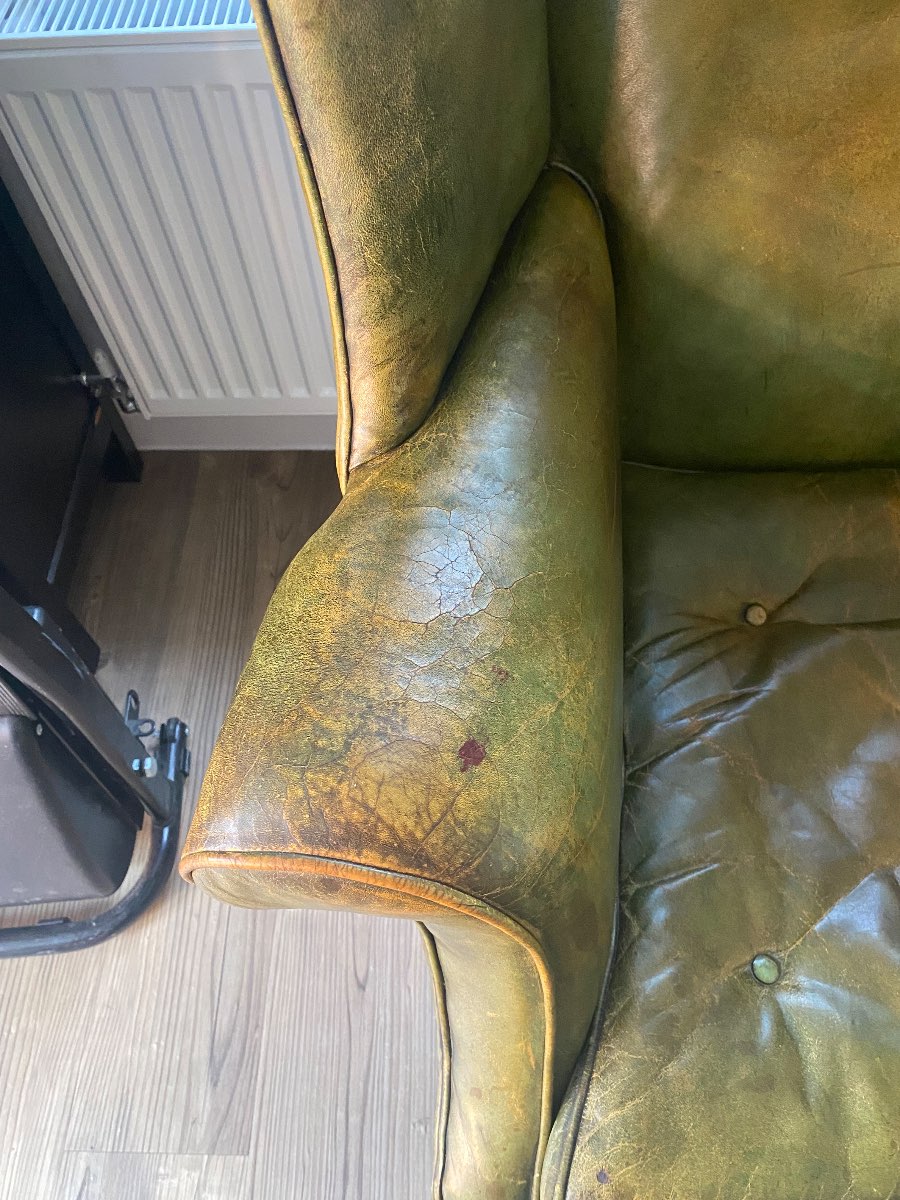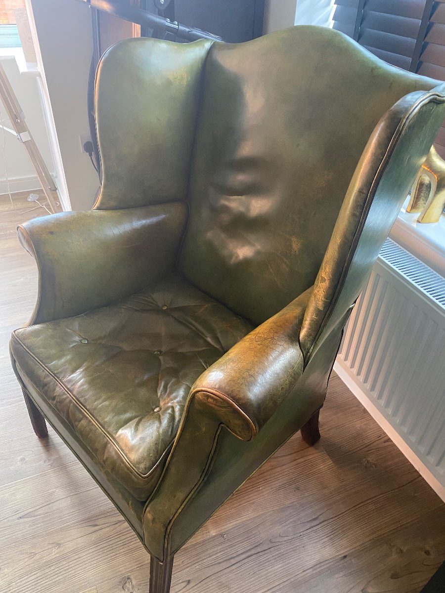AI Appraisal: Vintage Green Leather Wingback Chair