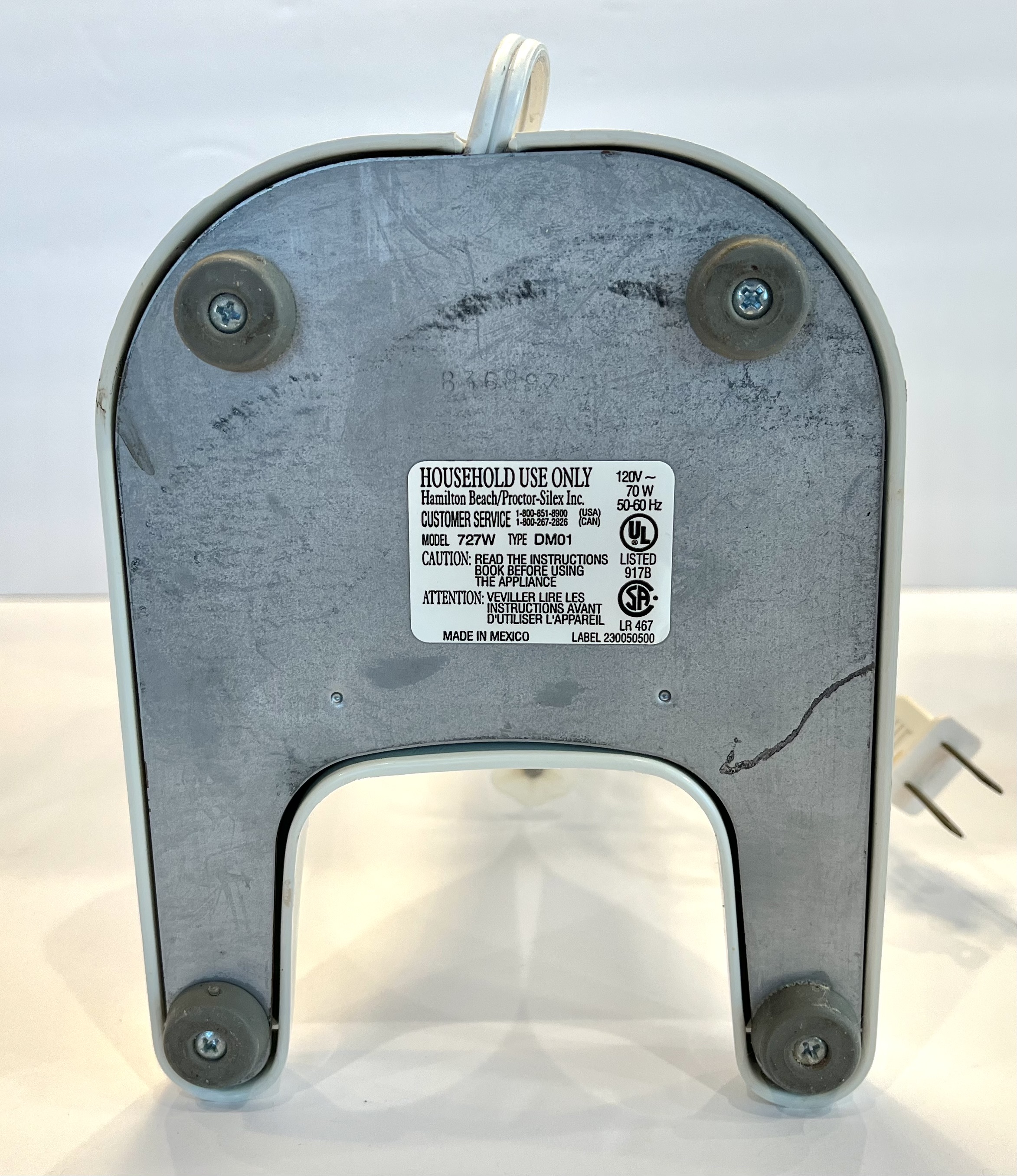Markings: (See photo for the bottom of the machine). Model 727W