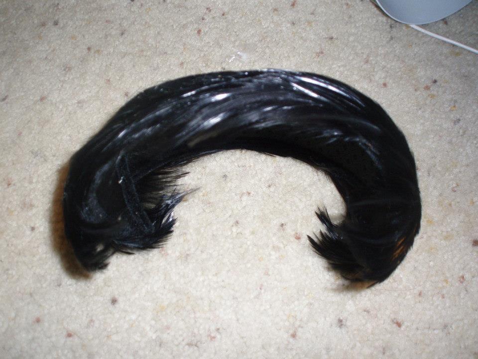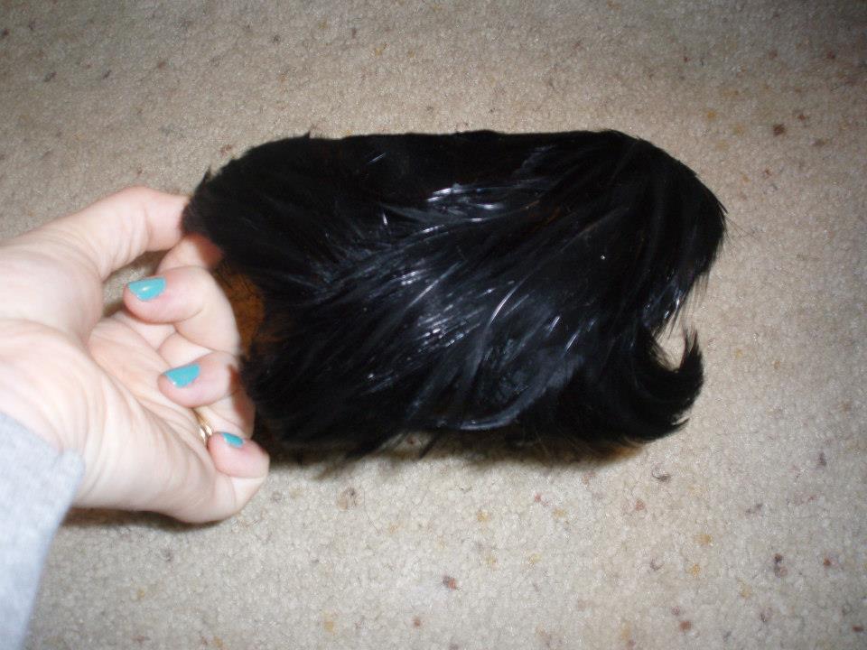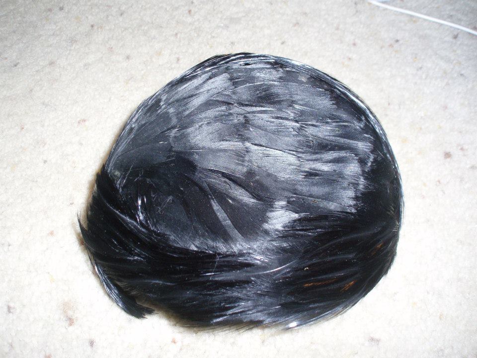 Another one I have has no labels inside but it has beautiful black feathers covering the whole hat.