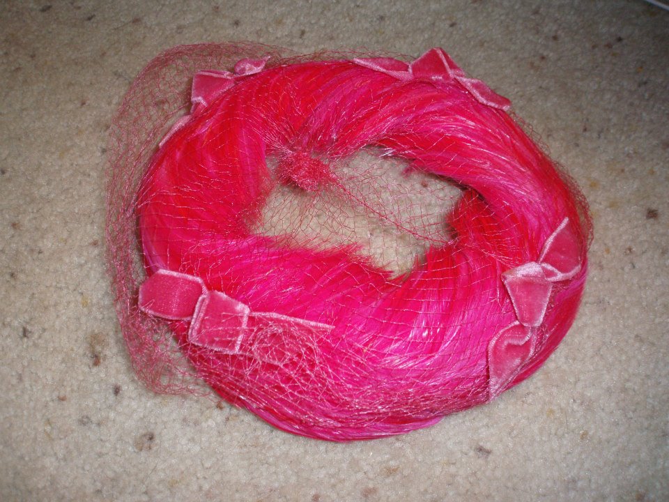 Another one I have has no labels in it at all, It is a fueshia pink with netting and bows around the top.