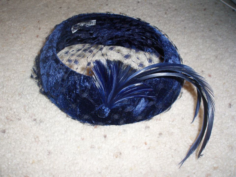 Another is Union Made KW 171010. That is a beautiful navy blue hat with decorative netting and a blue feather.