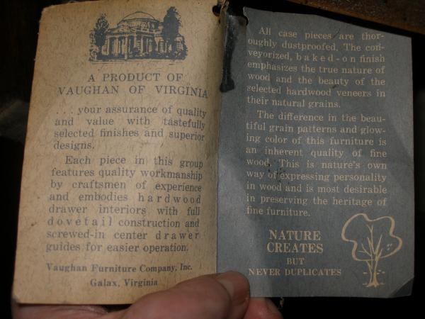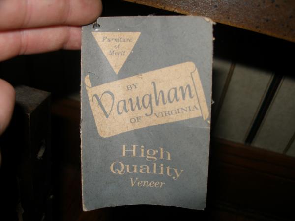 There is a tag on it that says it is made by Vaughn of Virginia & that it is high quality veneer. The back of the headboard says 100-7-A357 HEAD.