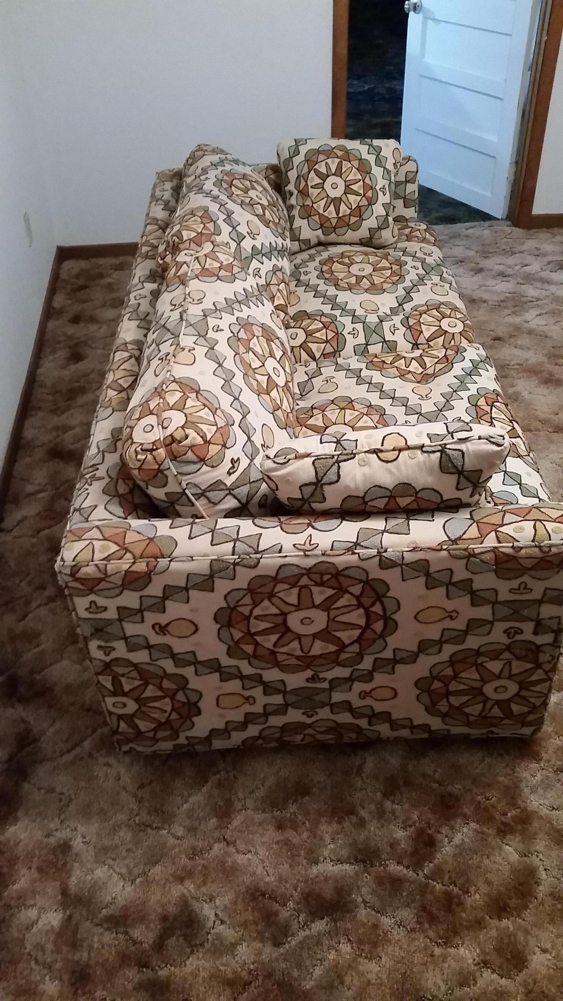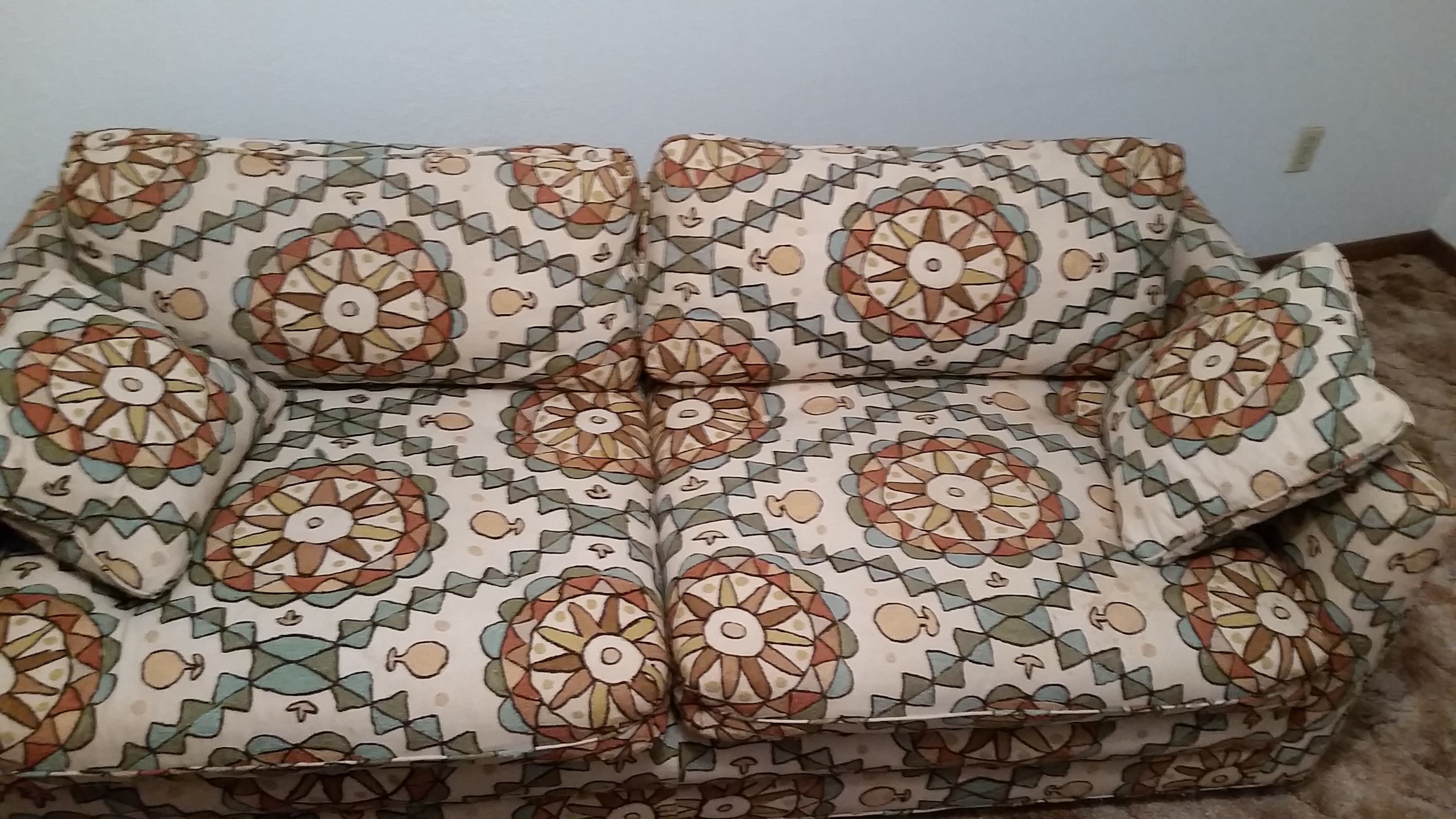 Unfortunately I do not know the origin of this piece. I acquired it from a relative and know absolutely nothing about it... I do belive though that the cushions are down and everything is wool.