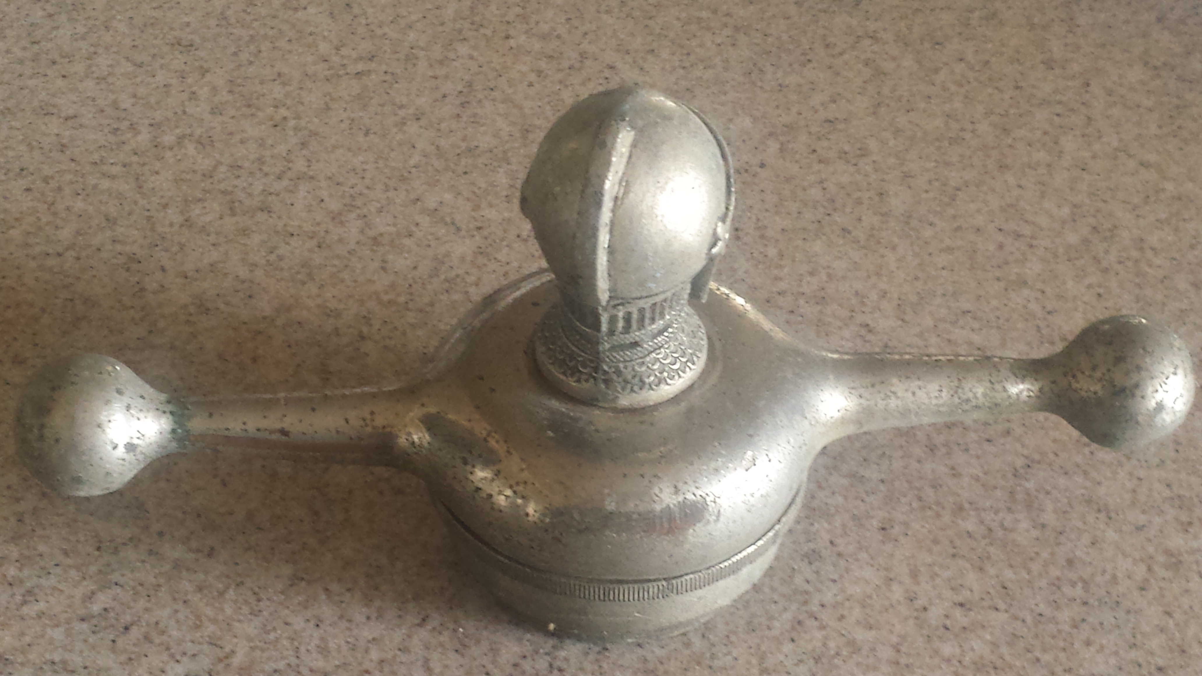 Radiator cap hood ornament. Willy's knight helmet hood.