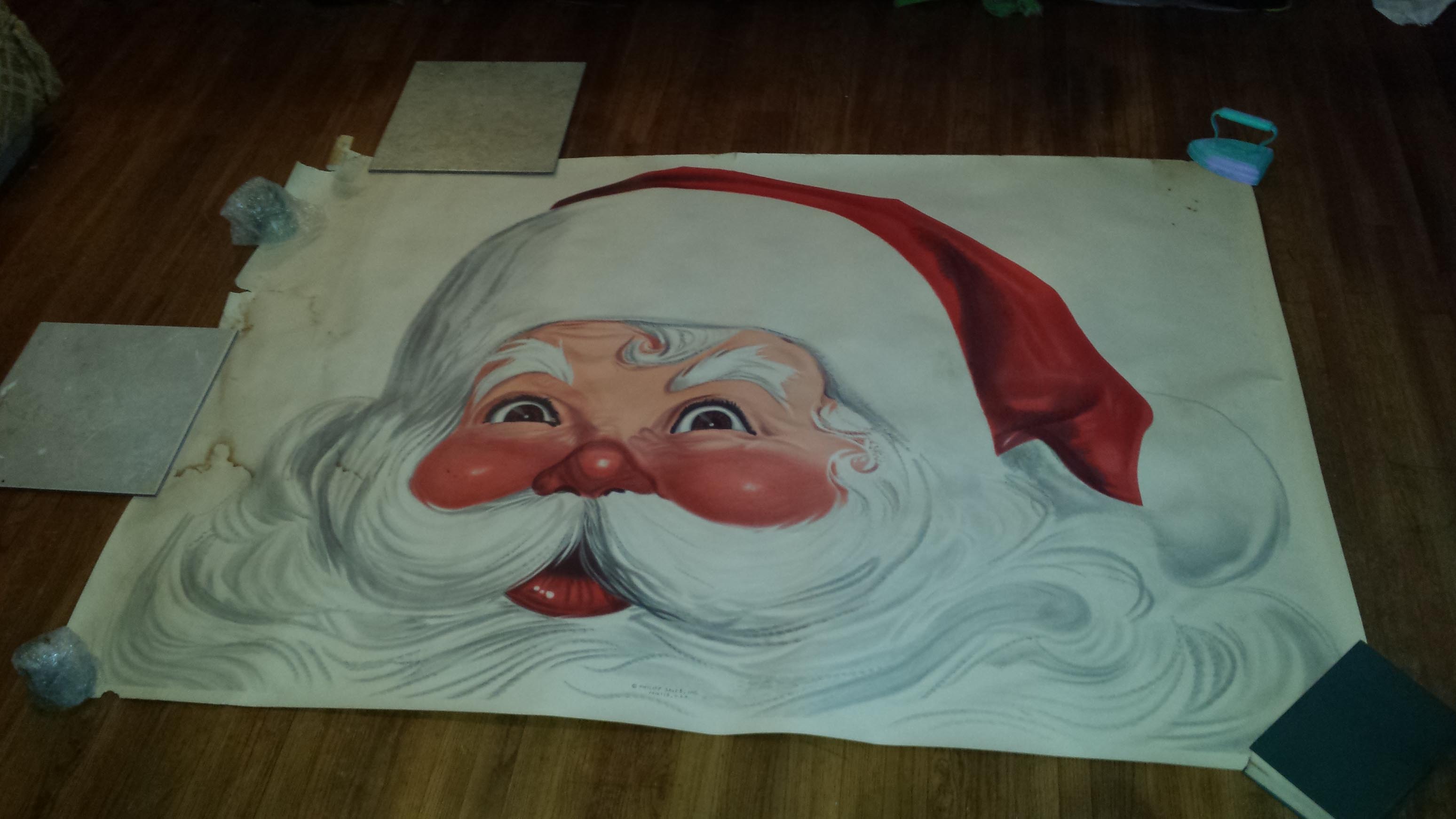 VINTAGE HUGE POSTER OF SANTA. THIS HAS BEEN ROLLED UP IN A TUBE AND