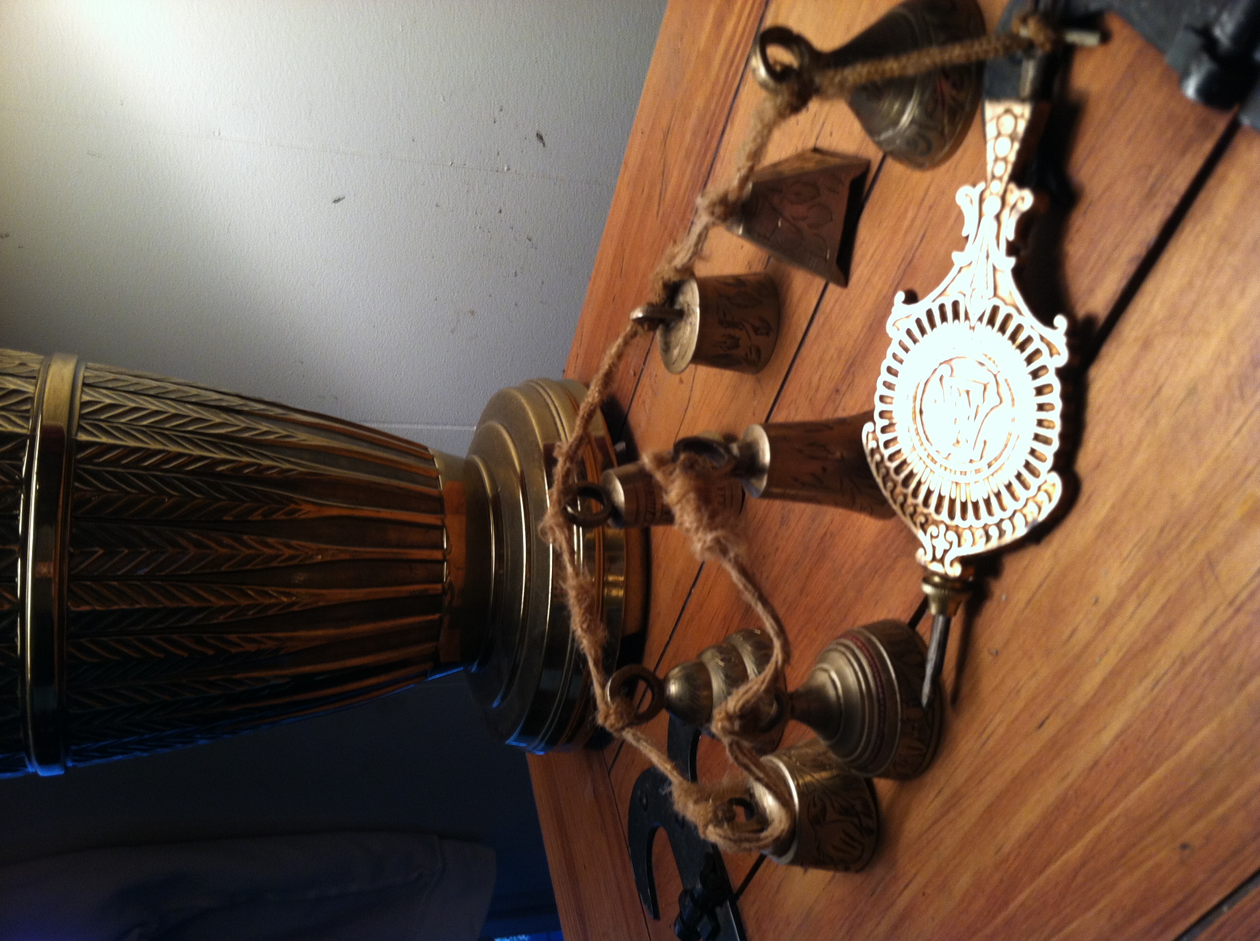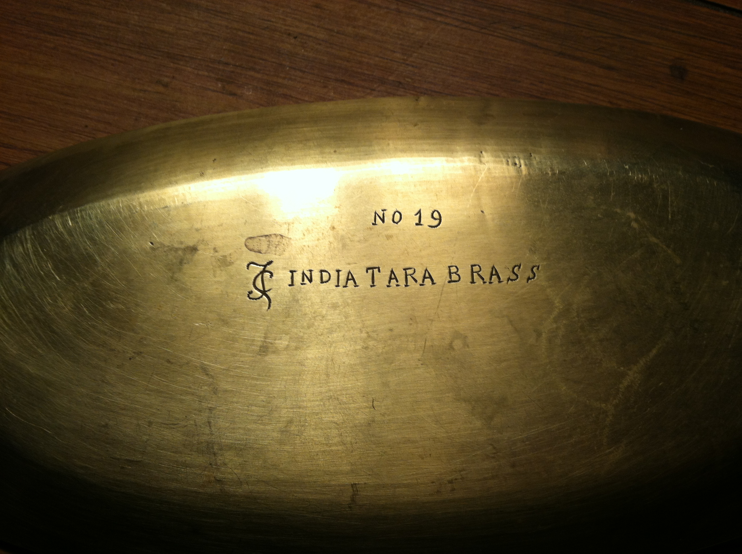 series of 8 etched Brass Chimes on a string with hallmark at the end of the line. Inside the bells "India" is etched.