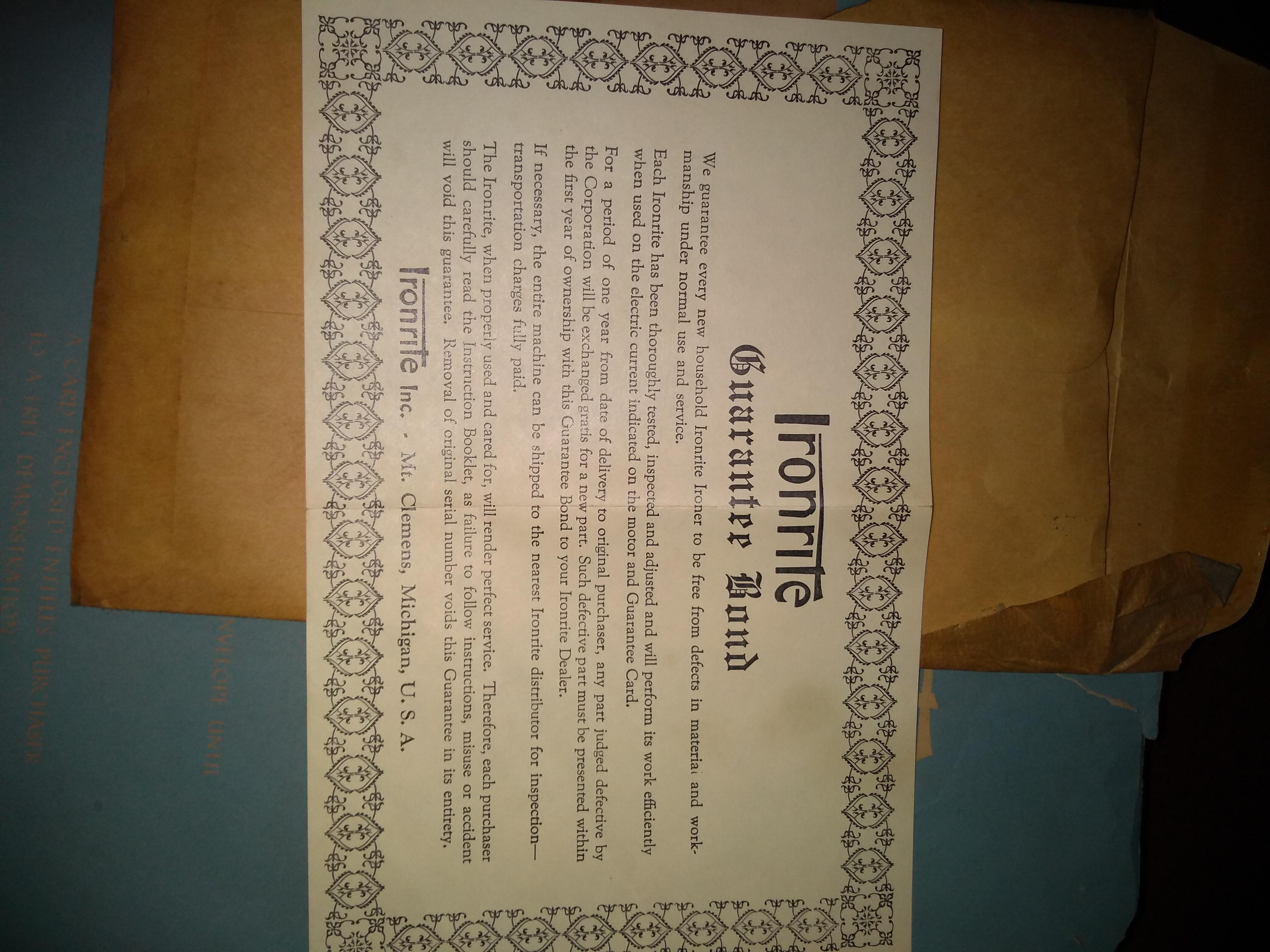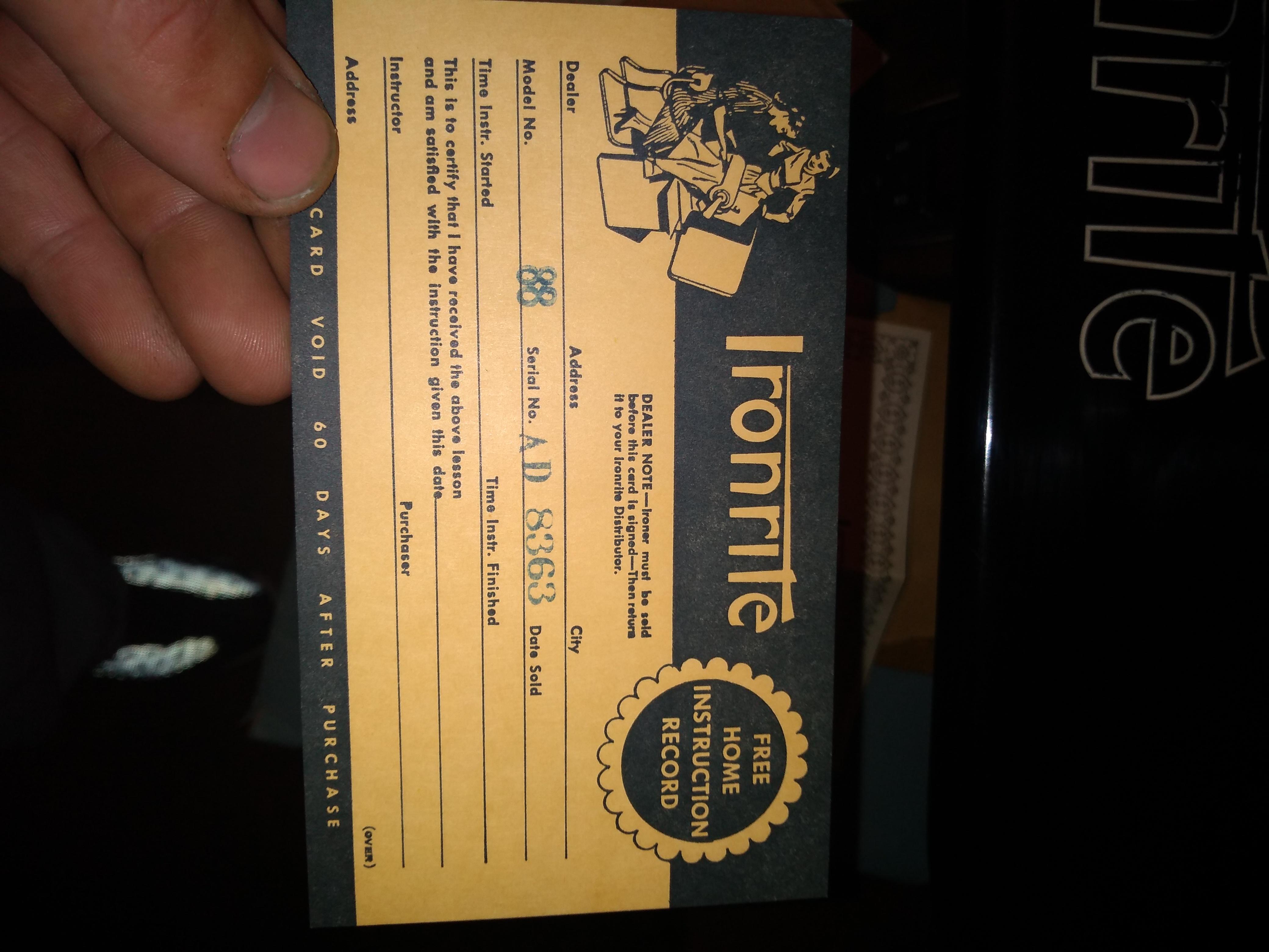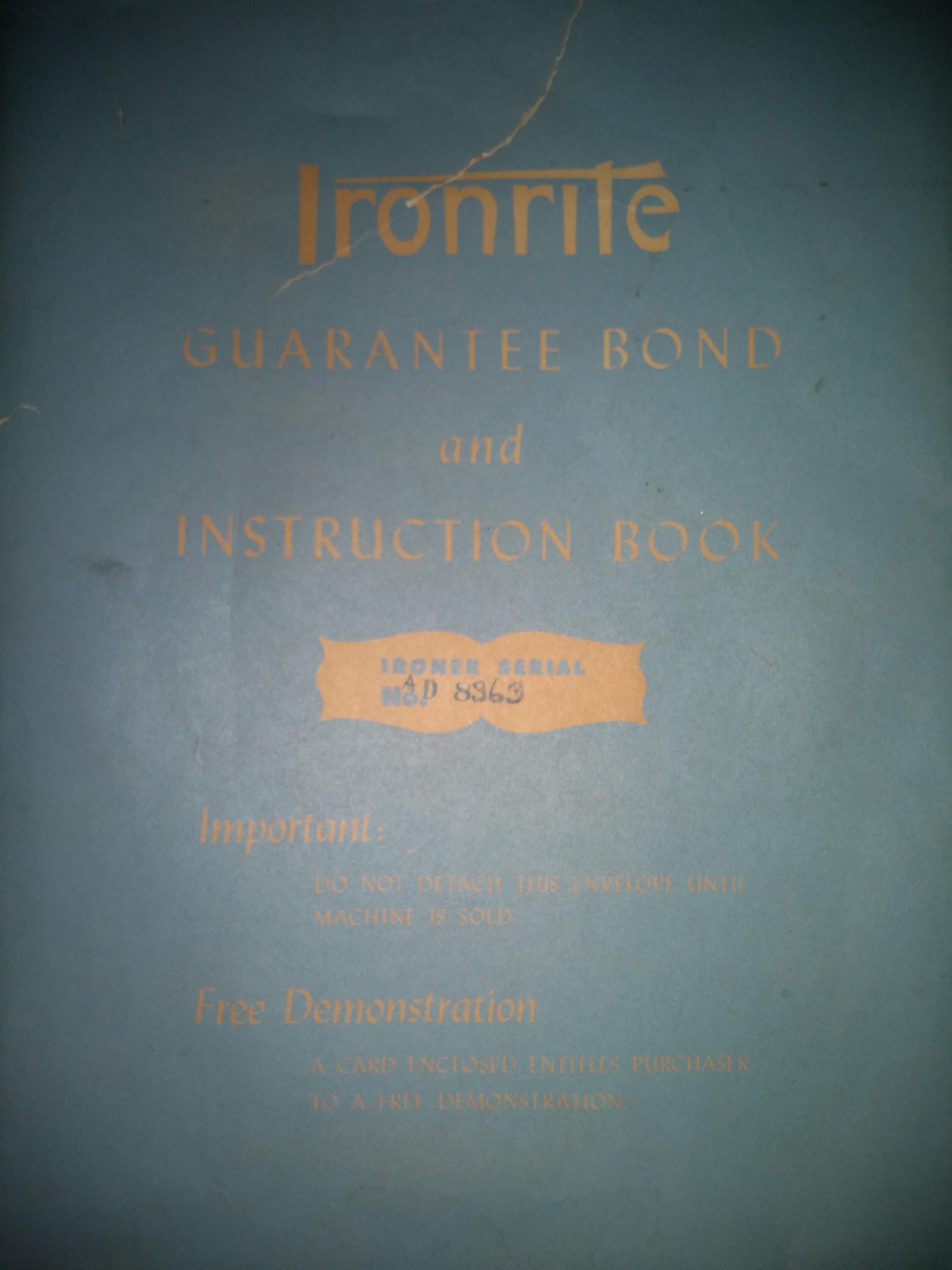 It's a 1950s vintage Ironrite steam press for linens and clothes. Have all original paperwork that is in mint condition. It's a dark Amber redish wood stain..I'm trying too see what the value of this is .
