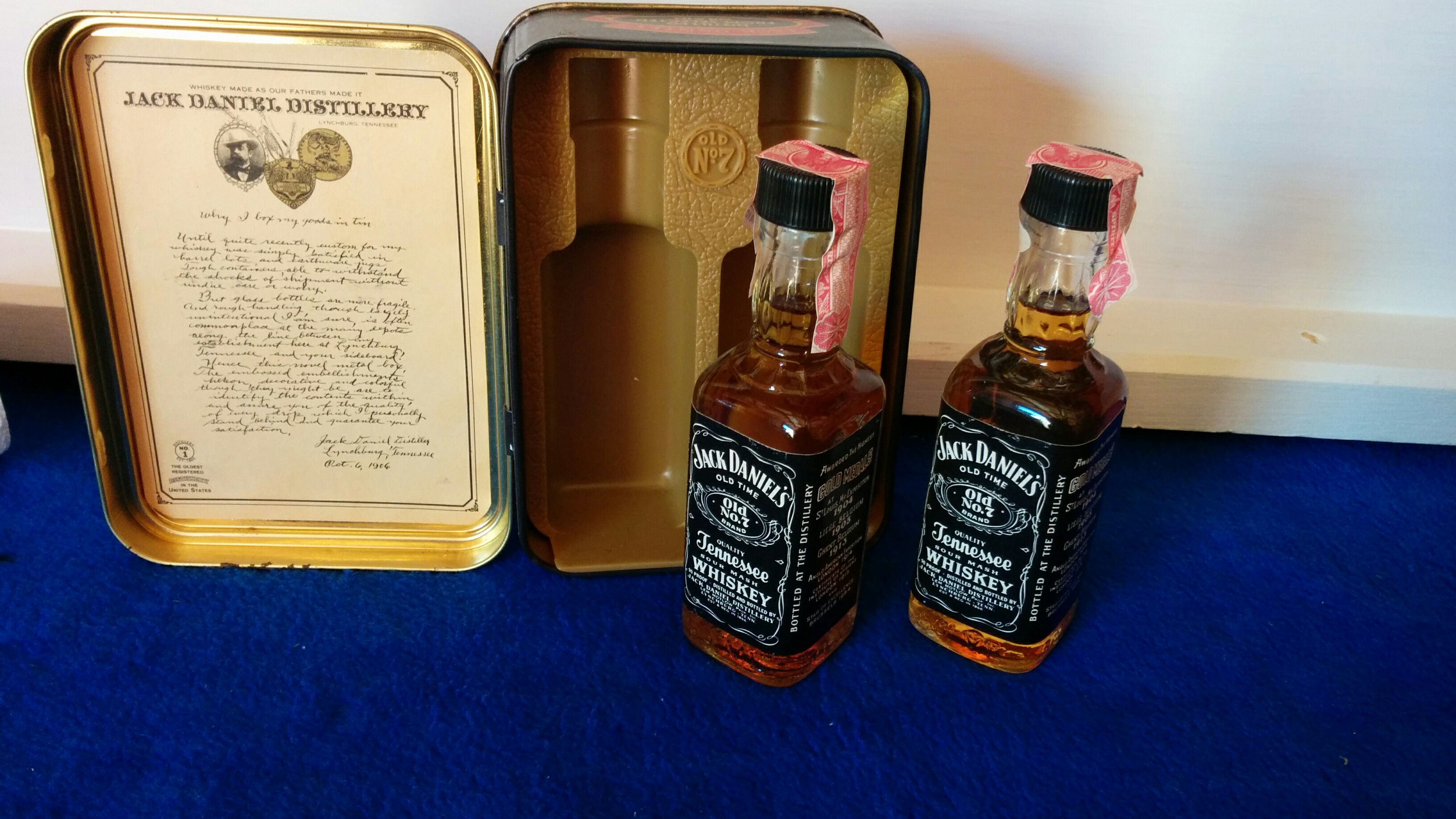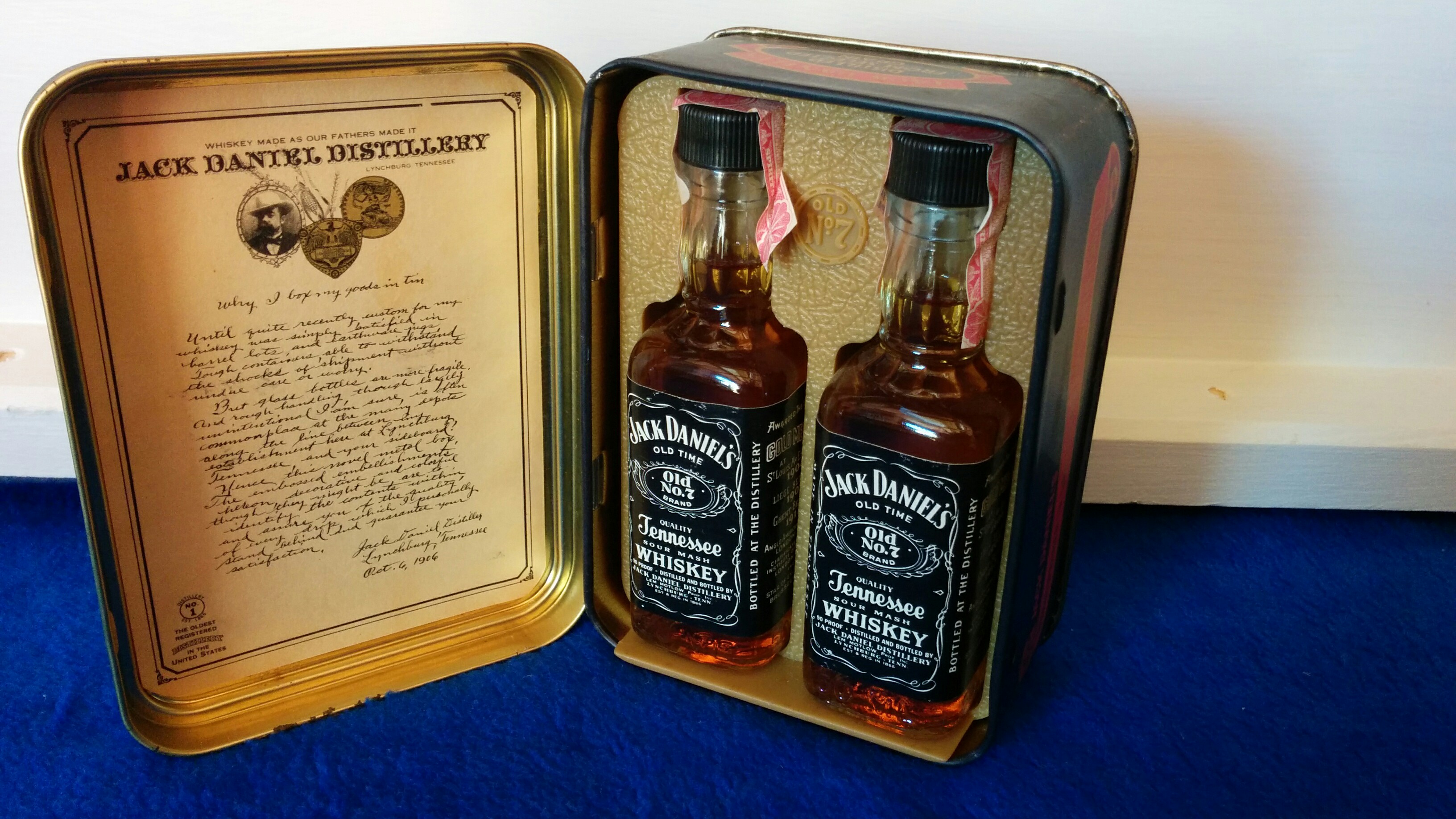 Re: Vintage Jack Daniels Old No.7 Tin with 2 x 50ml Glass...